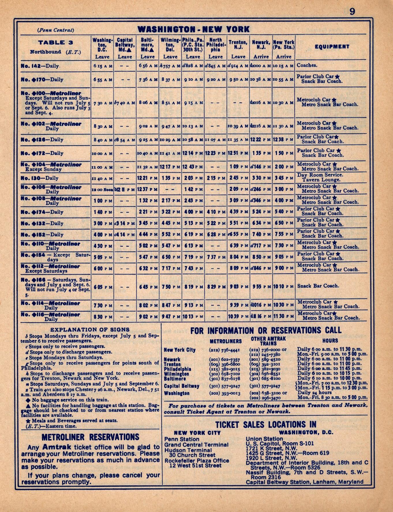 This timetable image is ©1971 National Railroad Passenger Corporation (Amtrak).