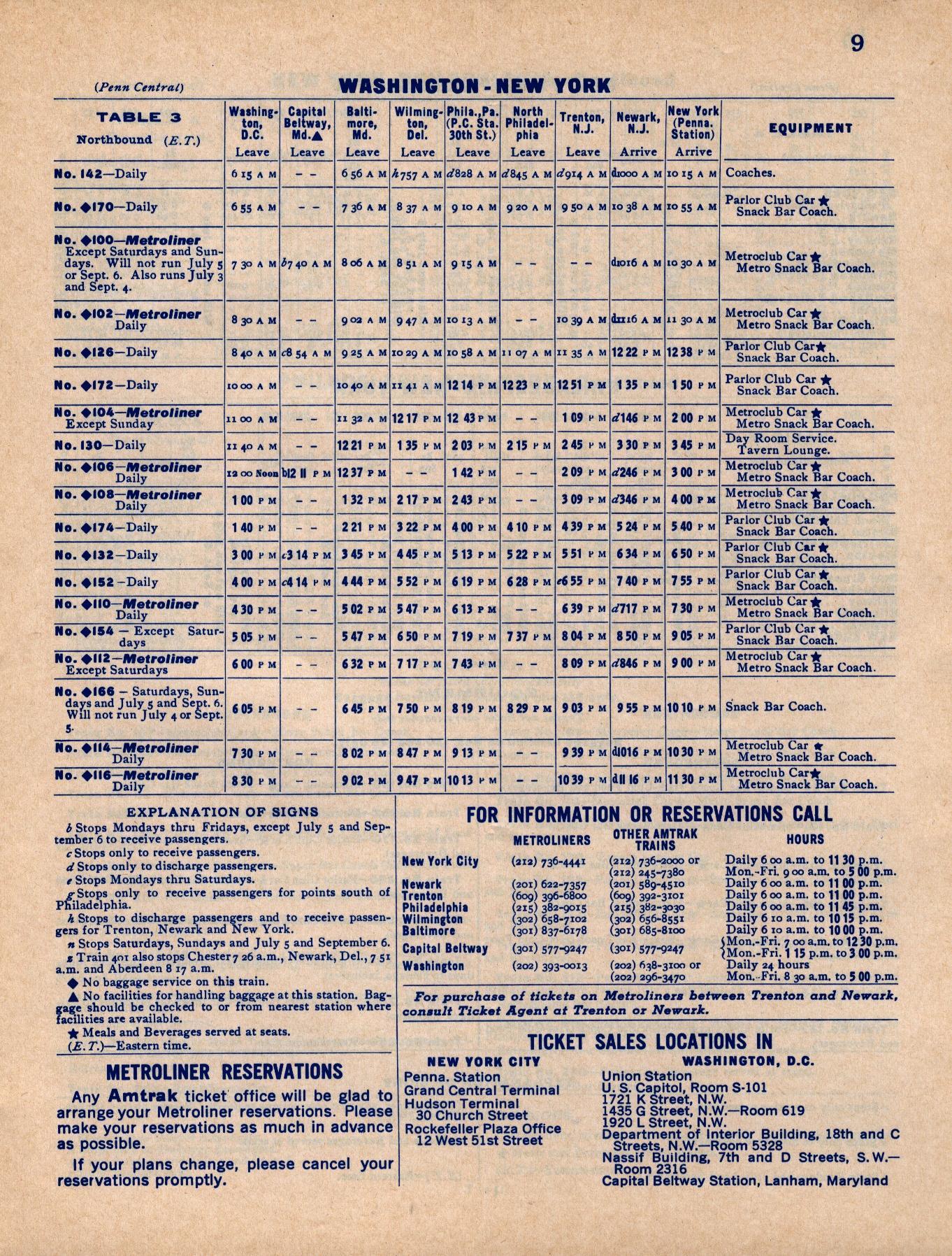 This timetable image is ©1971 National Railroad Passenger Corporation (Amtrak).