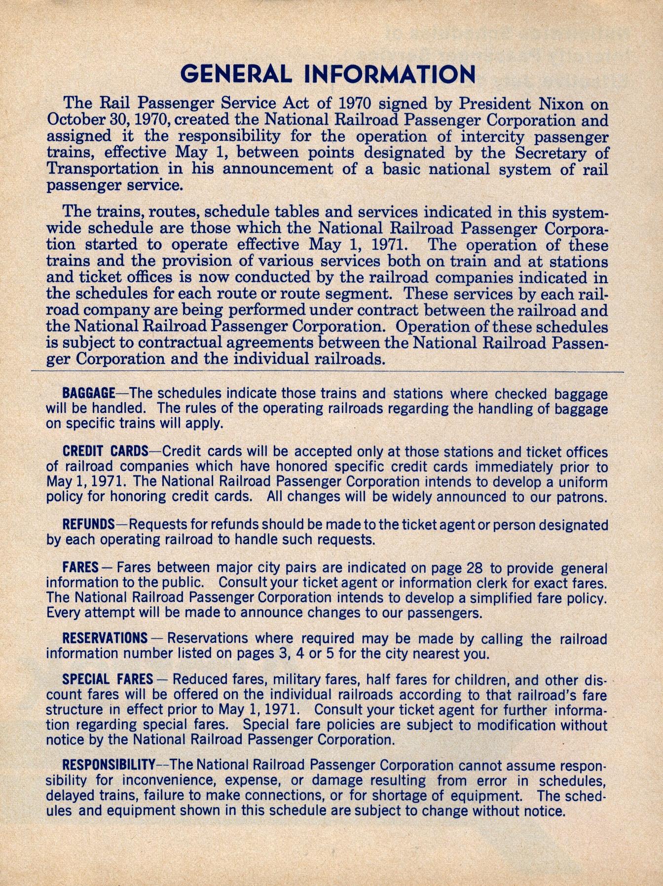 This timetable image is ©1971 National Railroad Passenger Corporation (Amtrak).