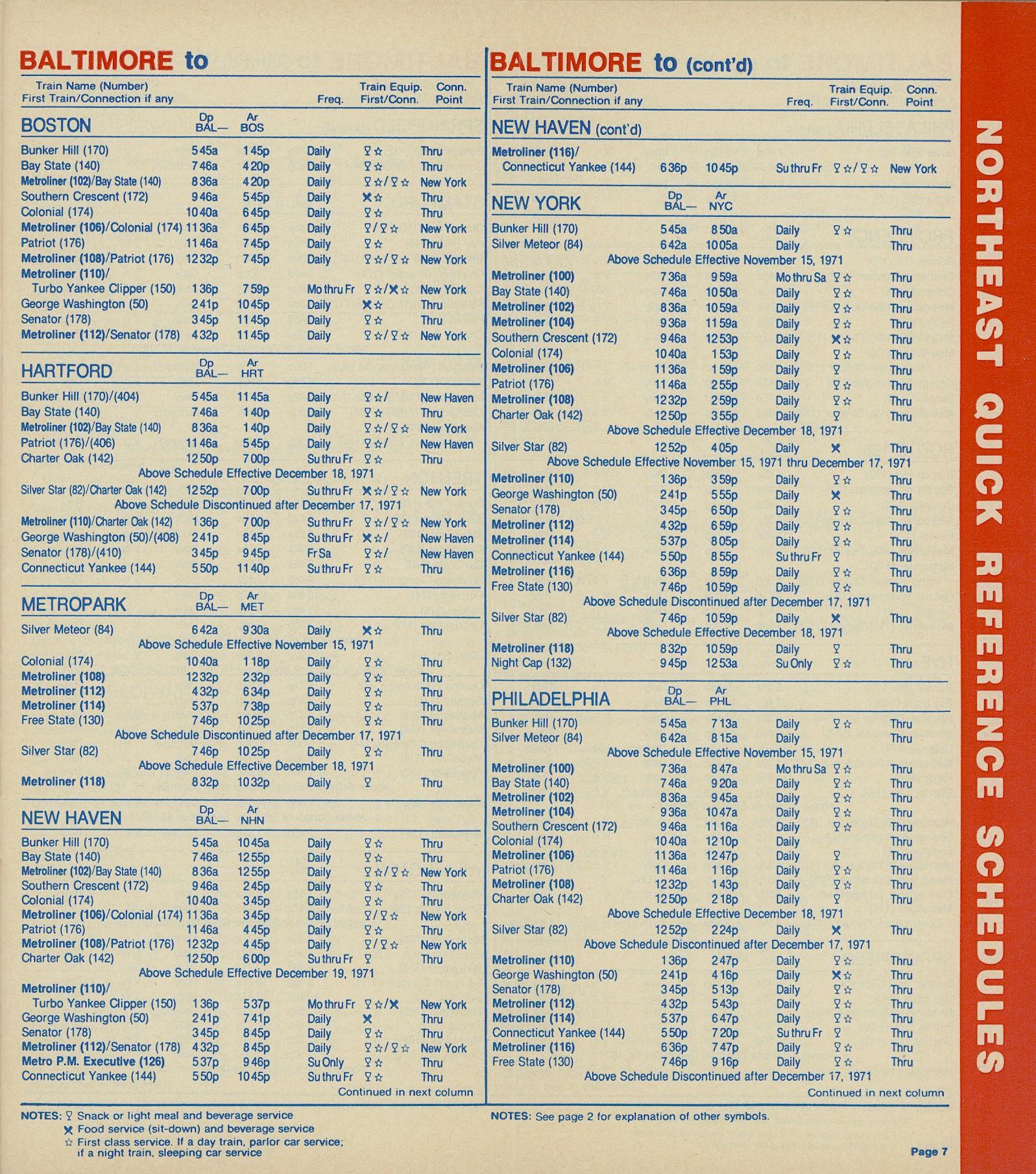 This timetable image is ©1971 National Railroad Passenger Corporation (Amtrak).