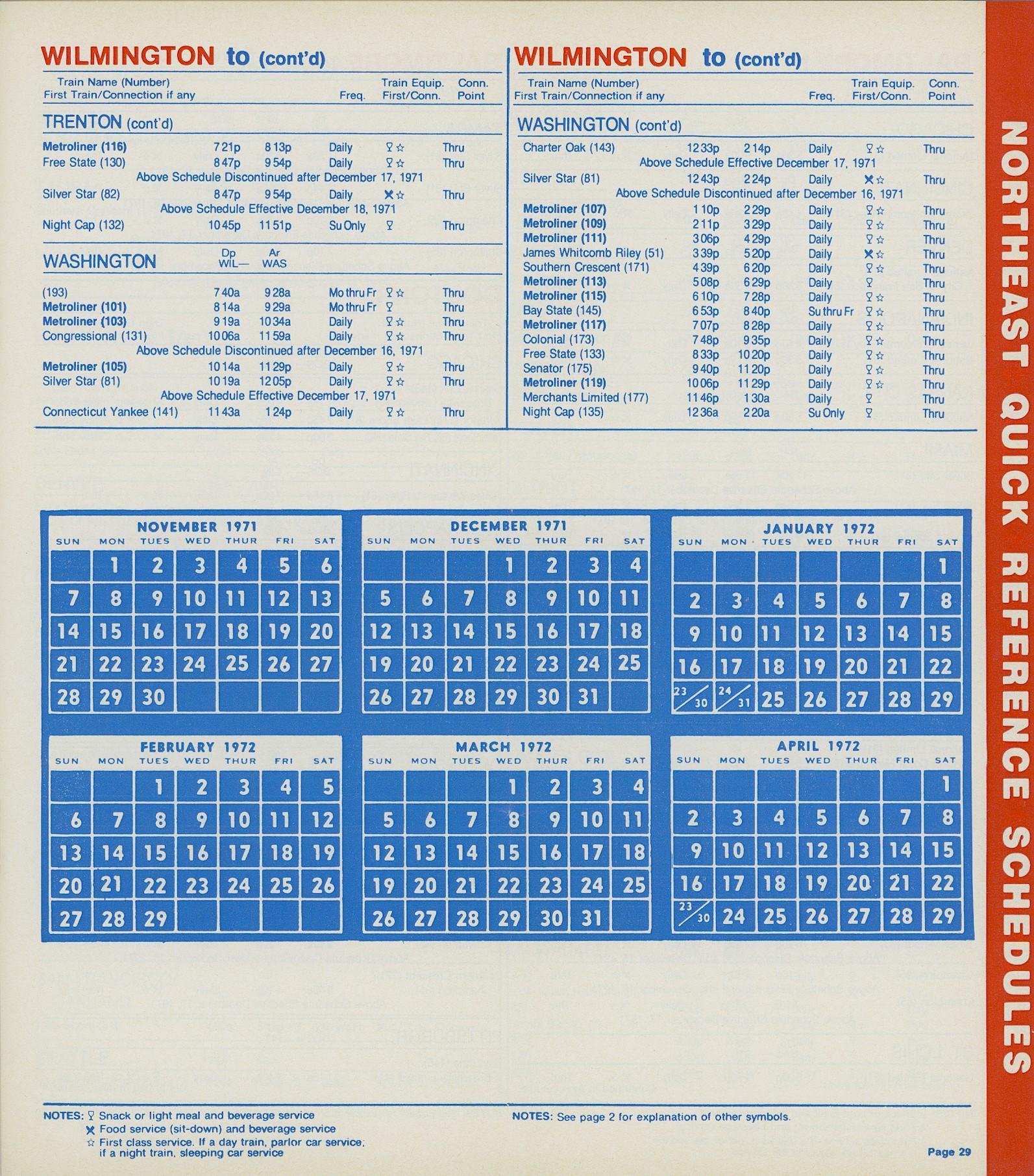 This timetable image is ©1971 National Railroad Passenger Corporation (Amtrak).