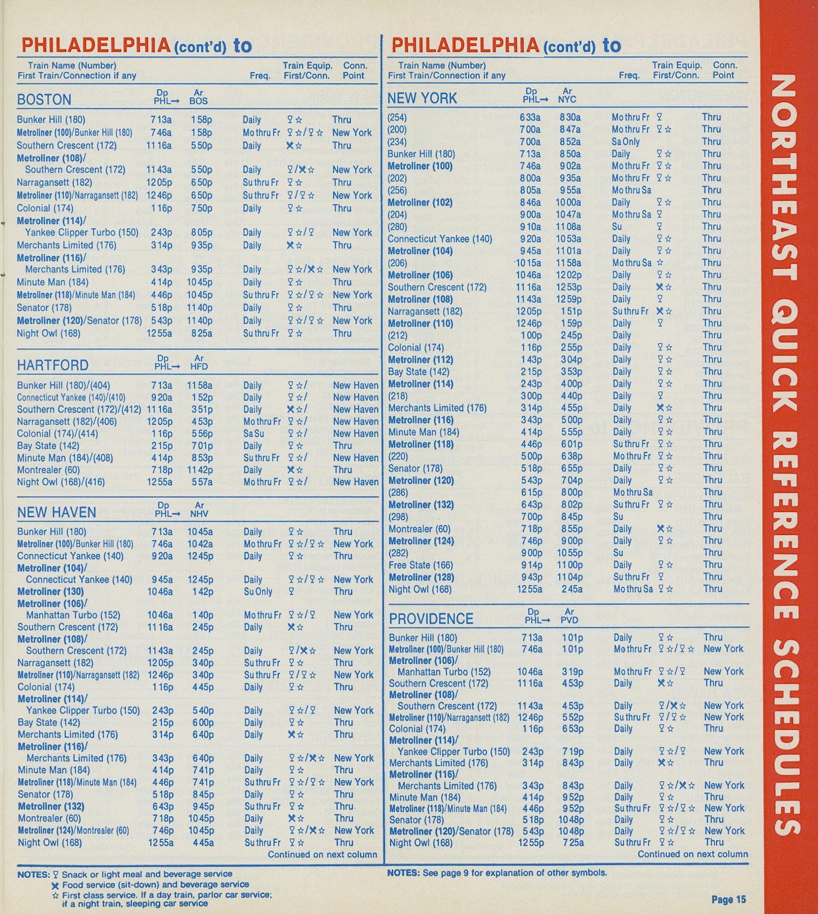 This timetable image is ©1972 National Railroad Passenger Corporation (Amtrak).