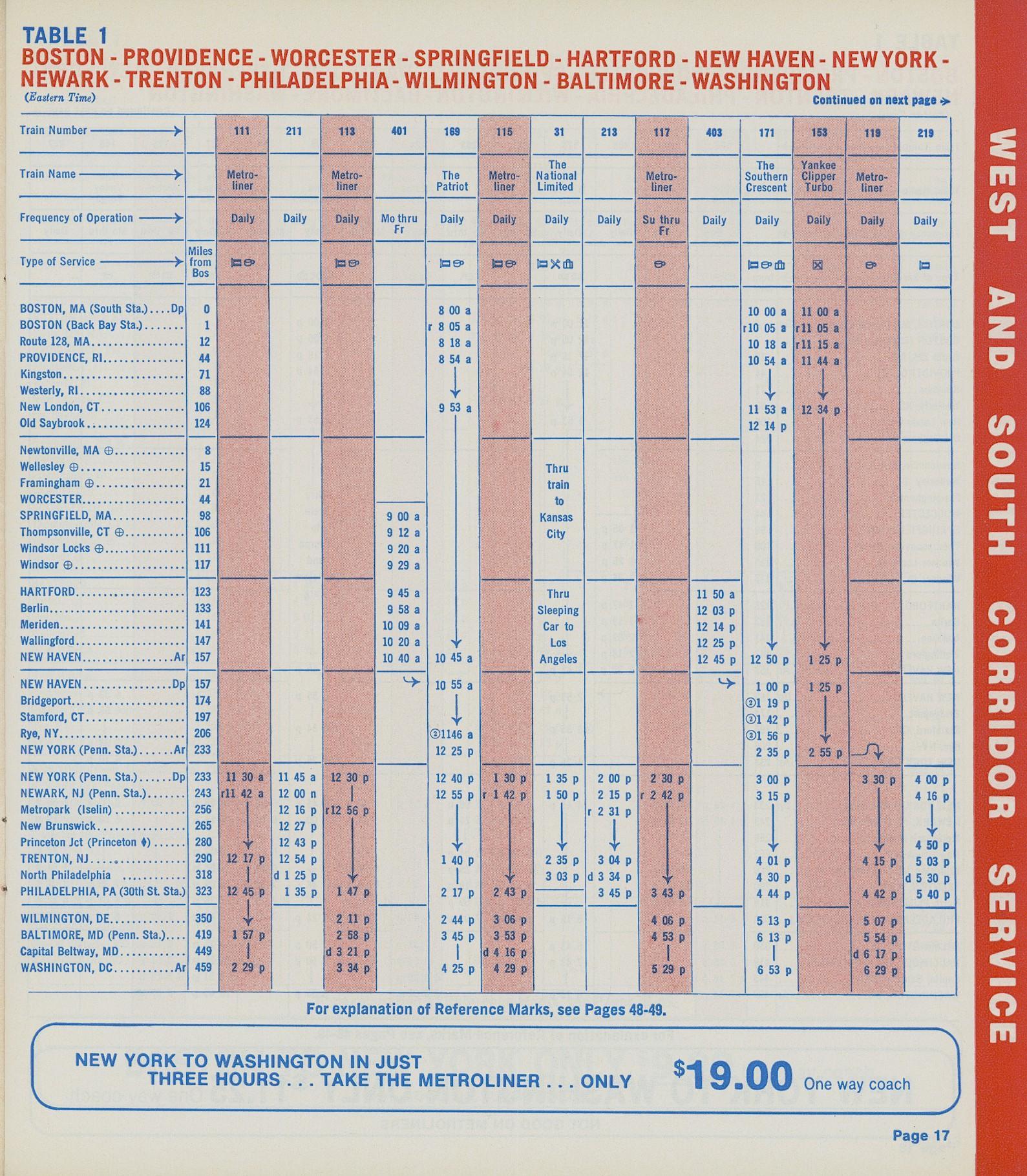 This timetable image is ©1973 National Railroad Passenger Corporation (Amtrak).