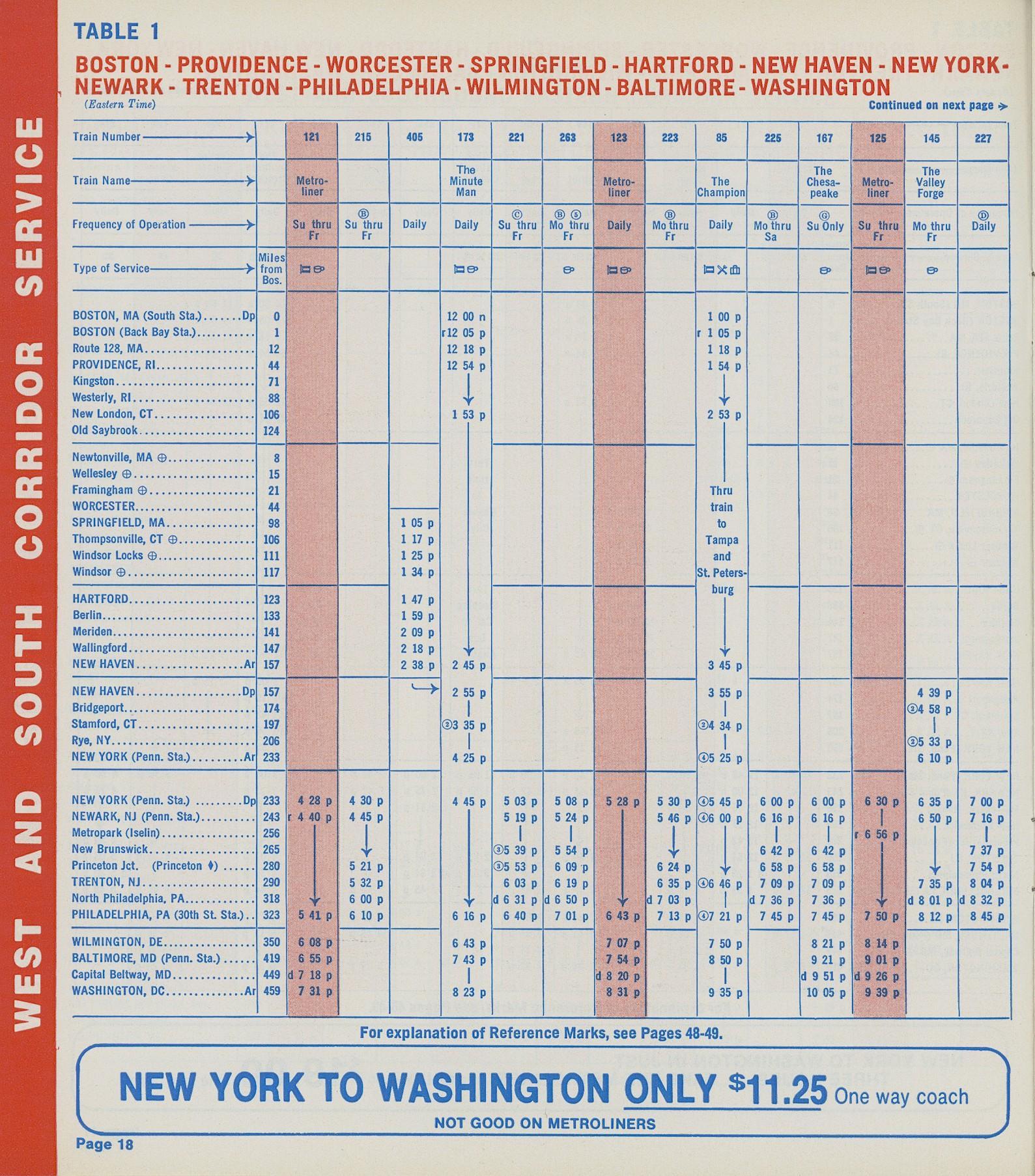 This timetable image is ©1973 National Railroad Passenger Corporation (Amtrak).