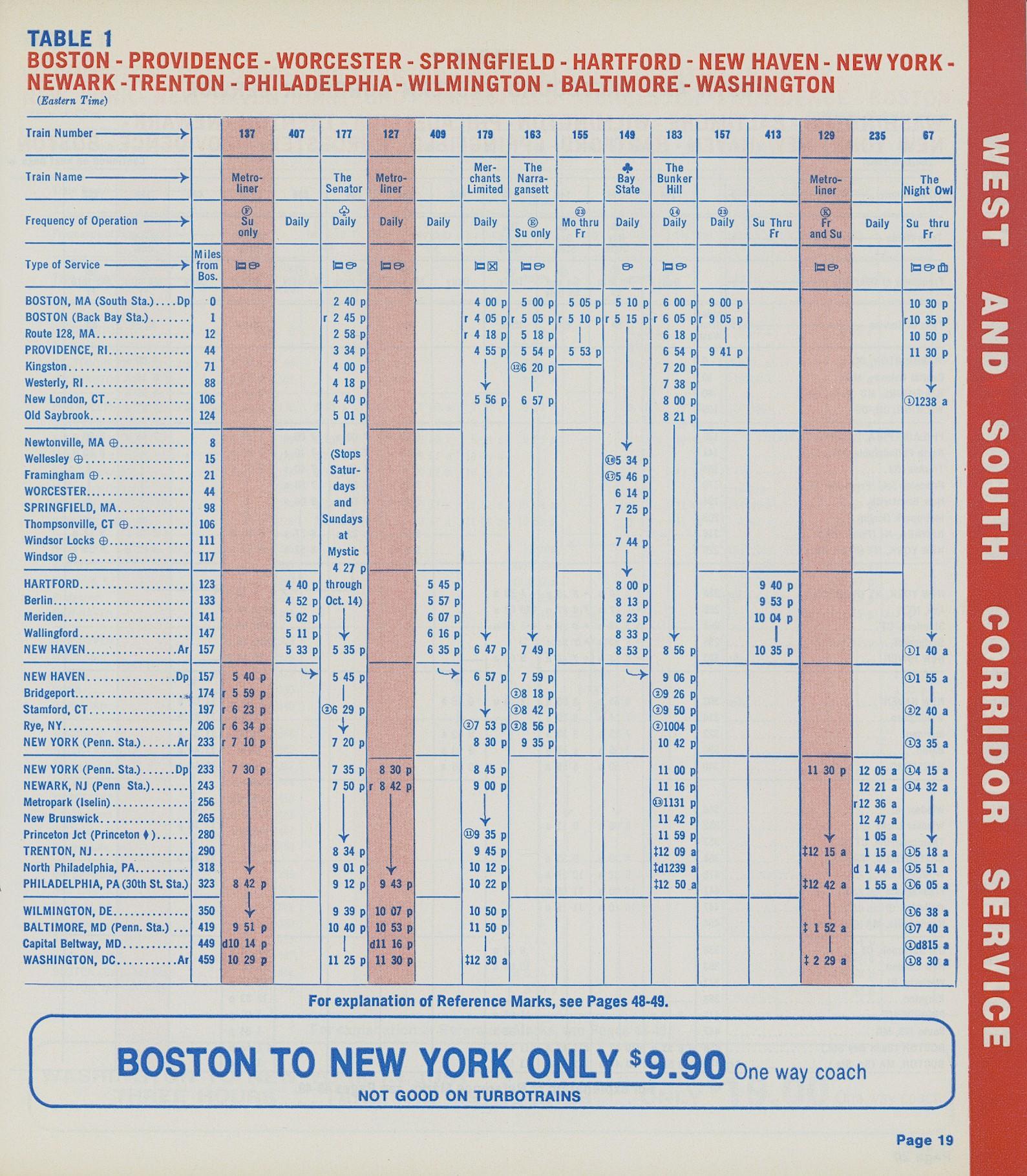 This timetable image is ©1973 National Railroad Passenger Corporation (Amtrak).