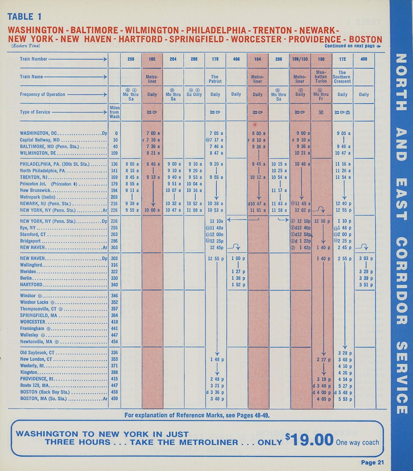 This timetable image is ©1973 National Railroad Passenger Corporation (Amtrak).
