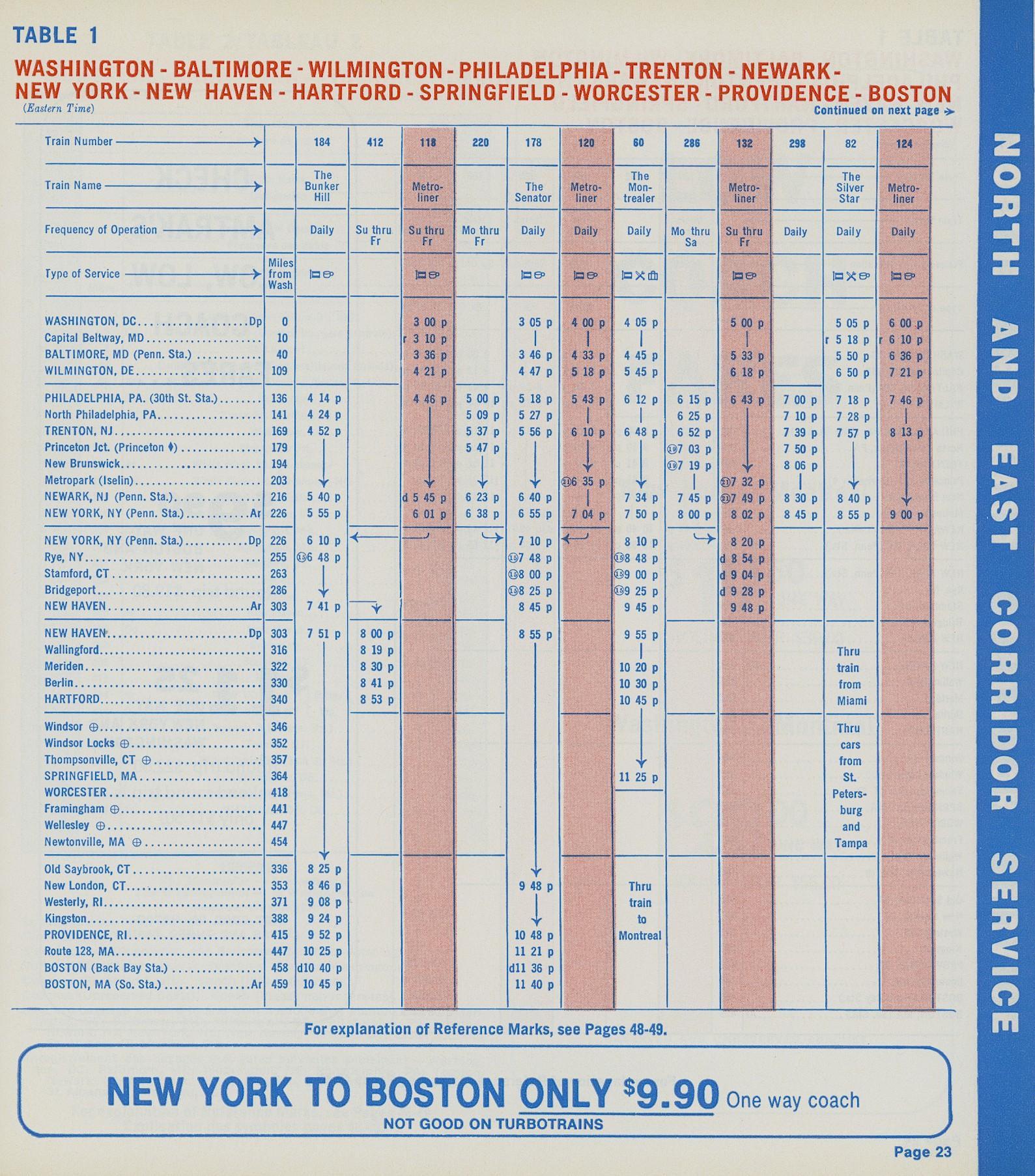 This timetable image is ©1973 National Railroad Passenger Corporation (Amtrak).