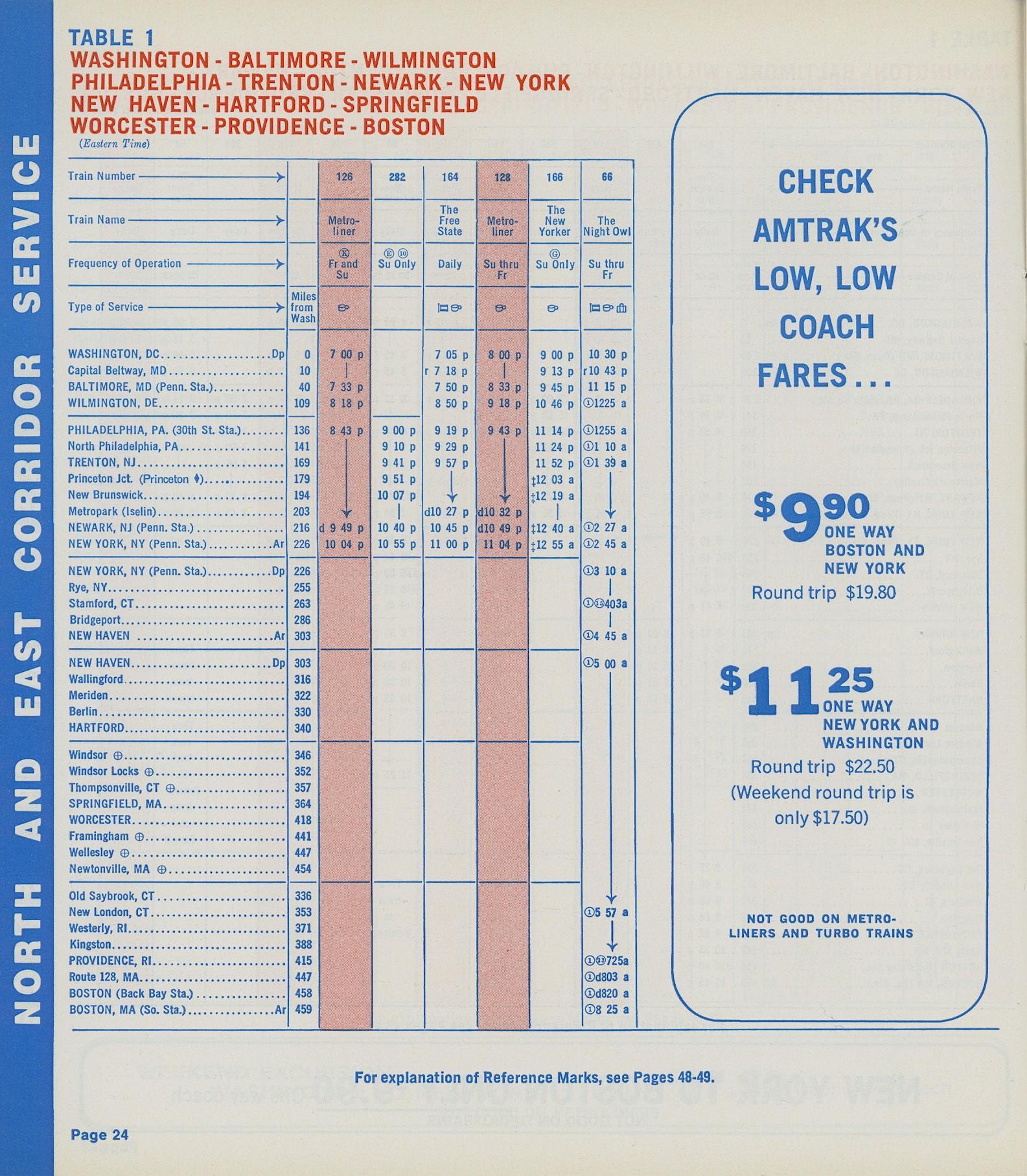 This timetable image is ©1973 National Railroad Passenger Corporation (Amtrak).