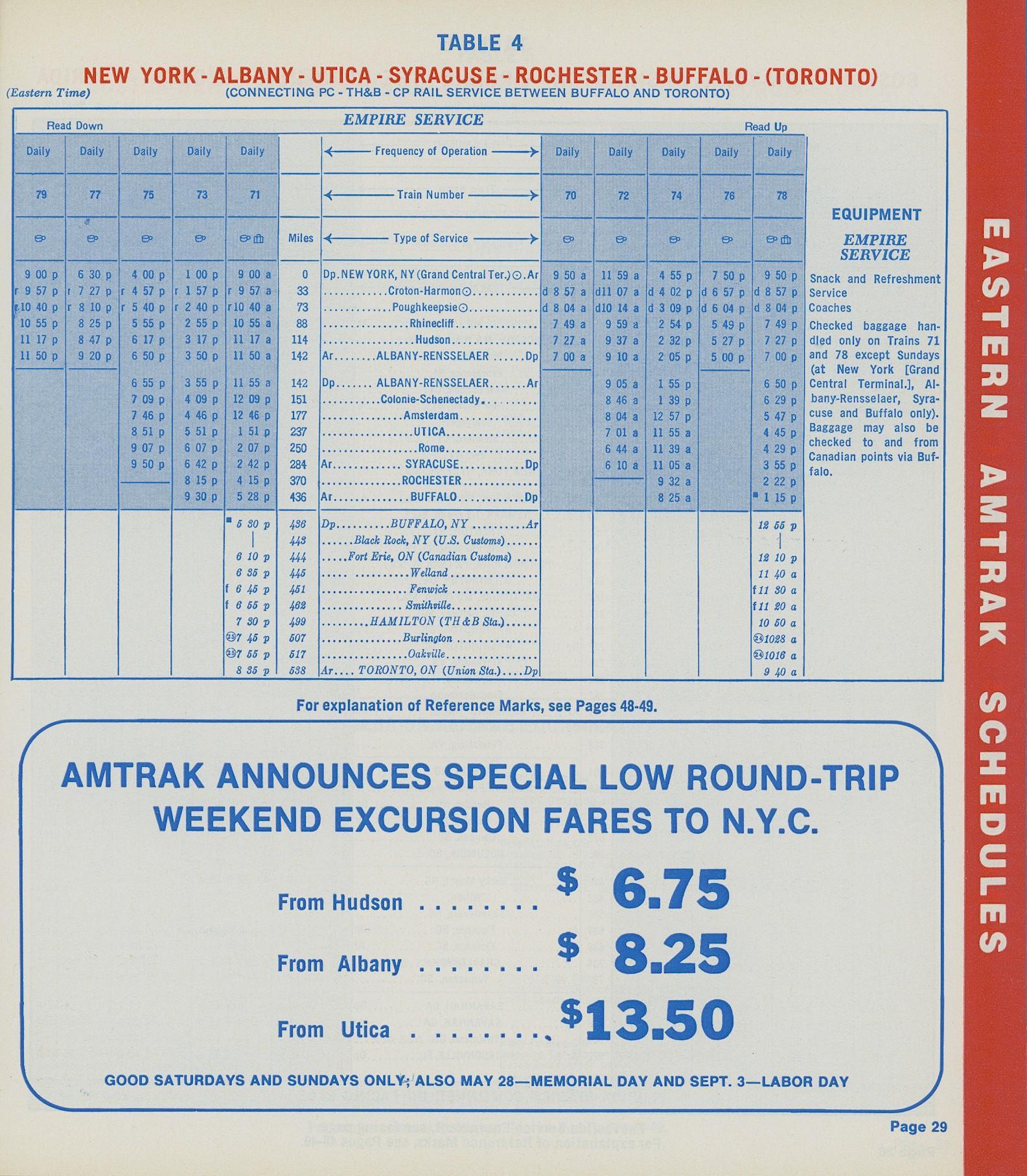 This timetable image is ©1973 National Railroad Passenger Corporation (Amtrak).