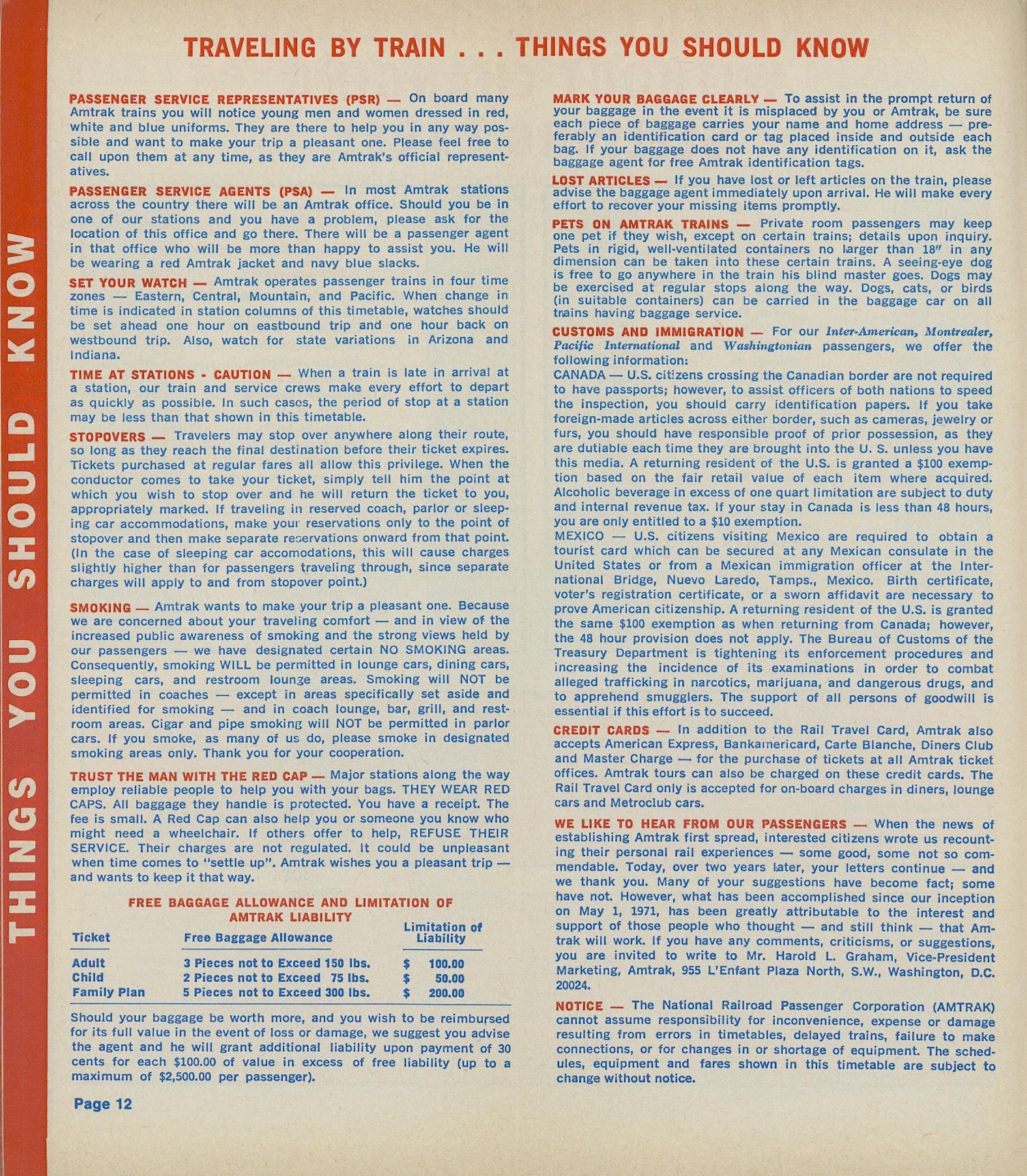 This timetable image is ©1973 National Railroad Passenger Corporation (Amtrak).