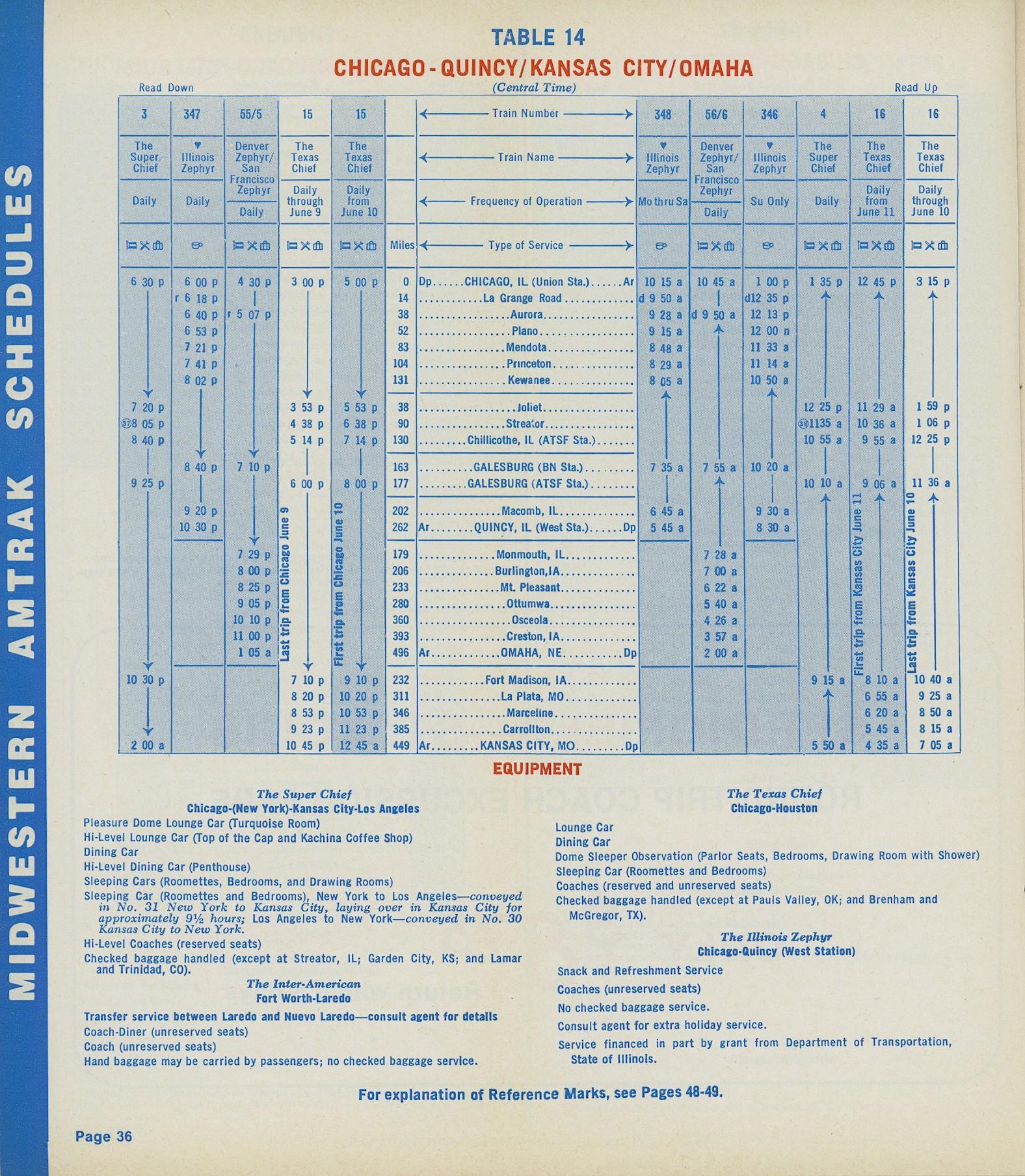 This timetable image is ©1973 National Railroad Passenger Corporation (Amtrak).