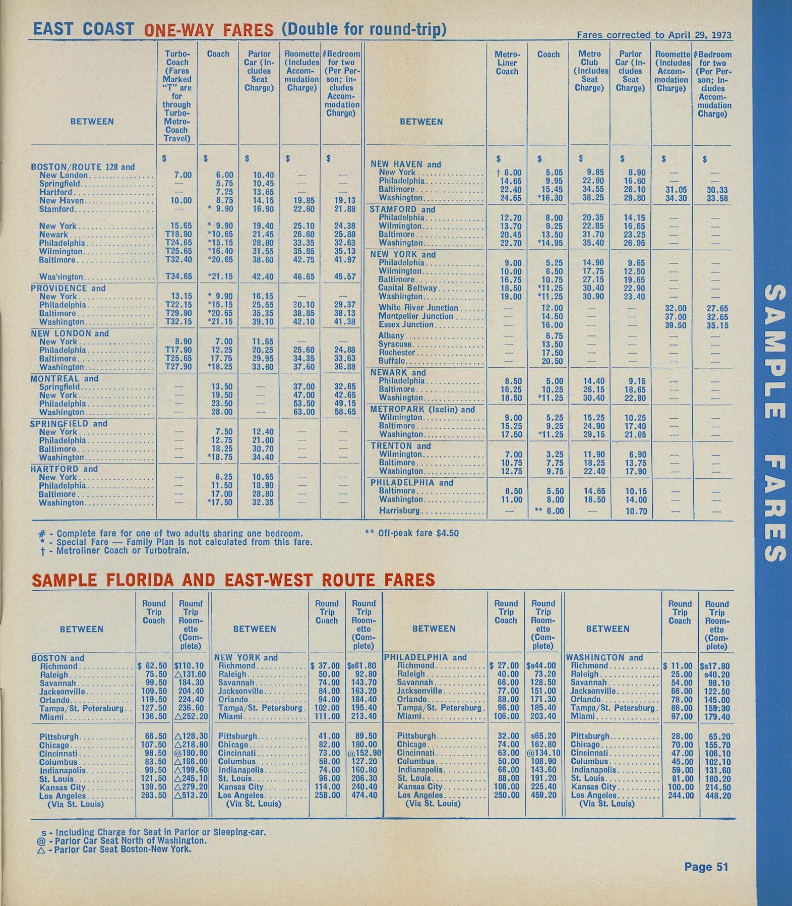 This timetable image is ©1973 National Railroad Passenger Corporation (Amtrak).