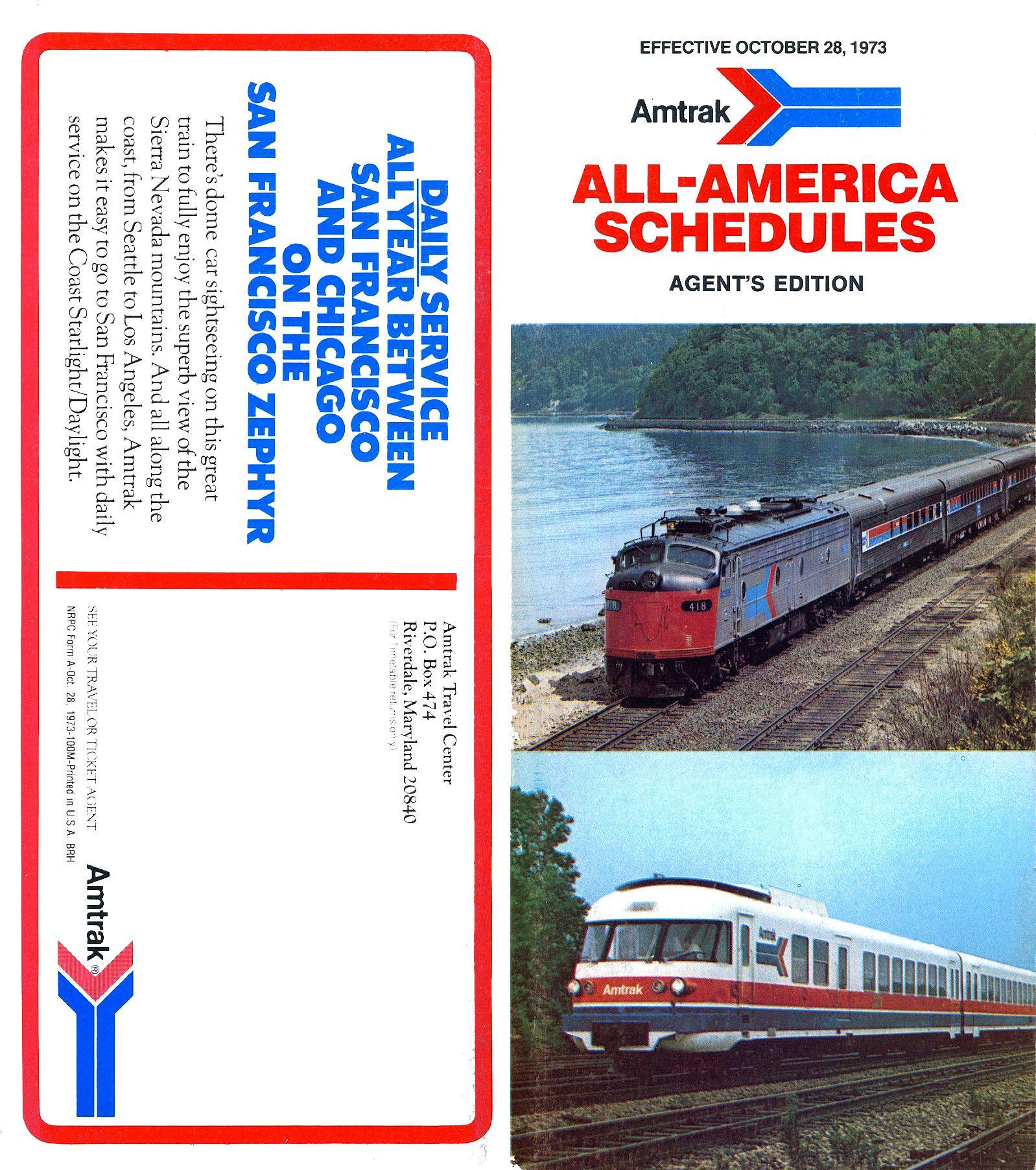 This timetable image is ©1973 National Railroad Passenger Corporation (Amtrak).