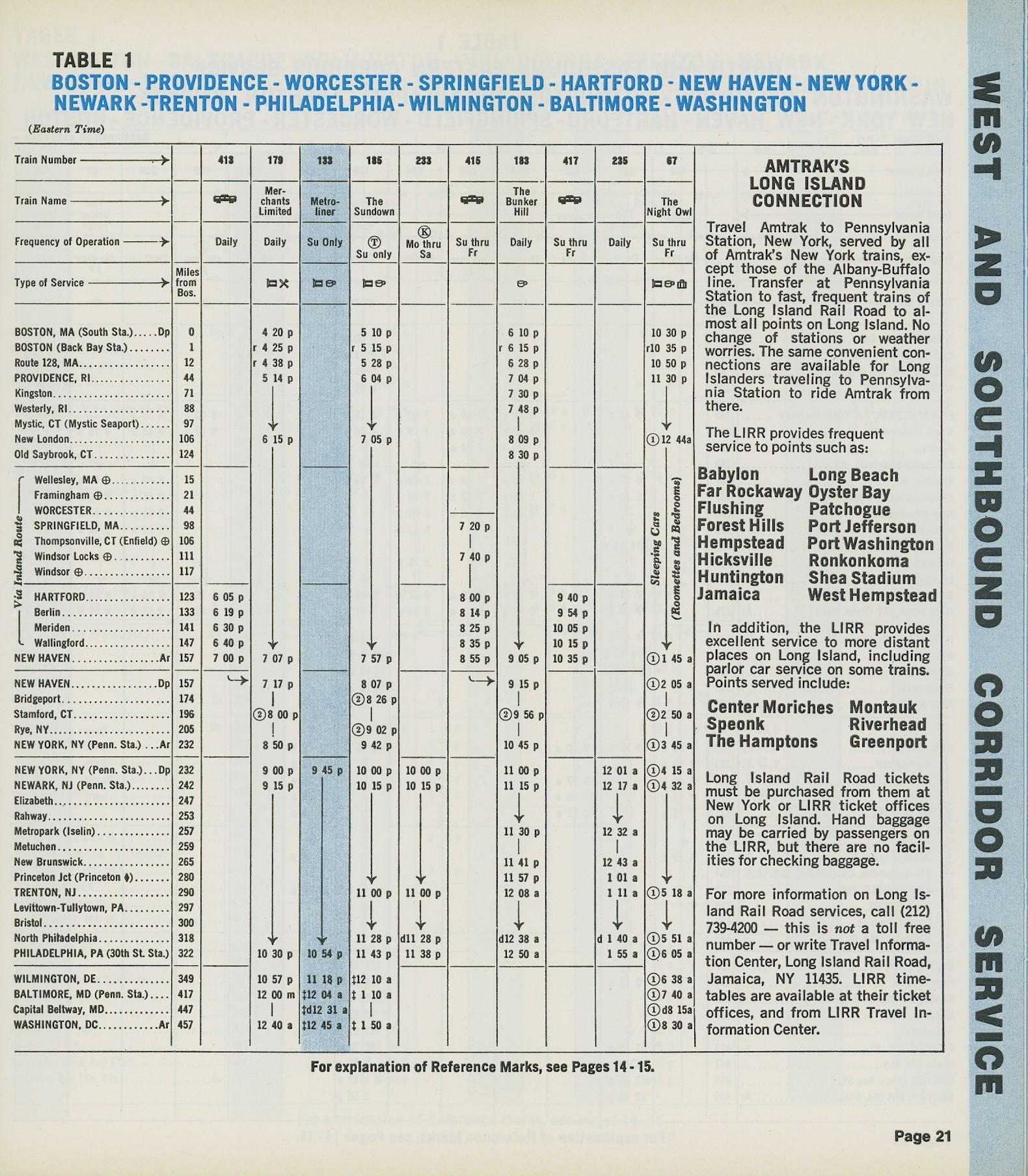 This timetable image is ©1973 National Railroad Passenger Corporation (Amtrak).