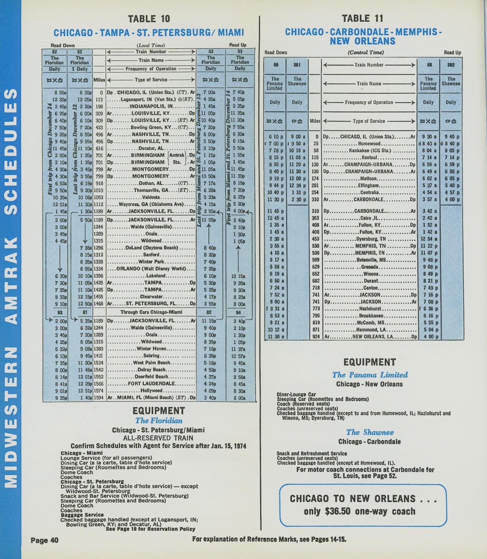 This timetable image is ©1973 National Railroad Passenger Corporation (Amtrak).