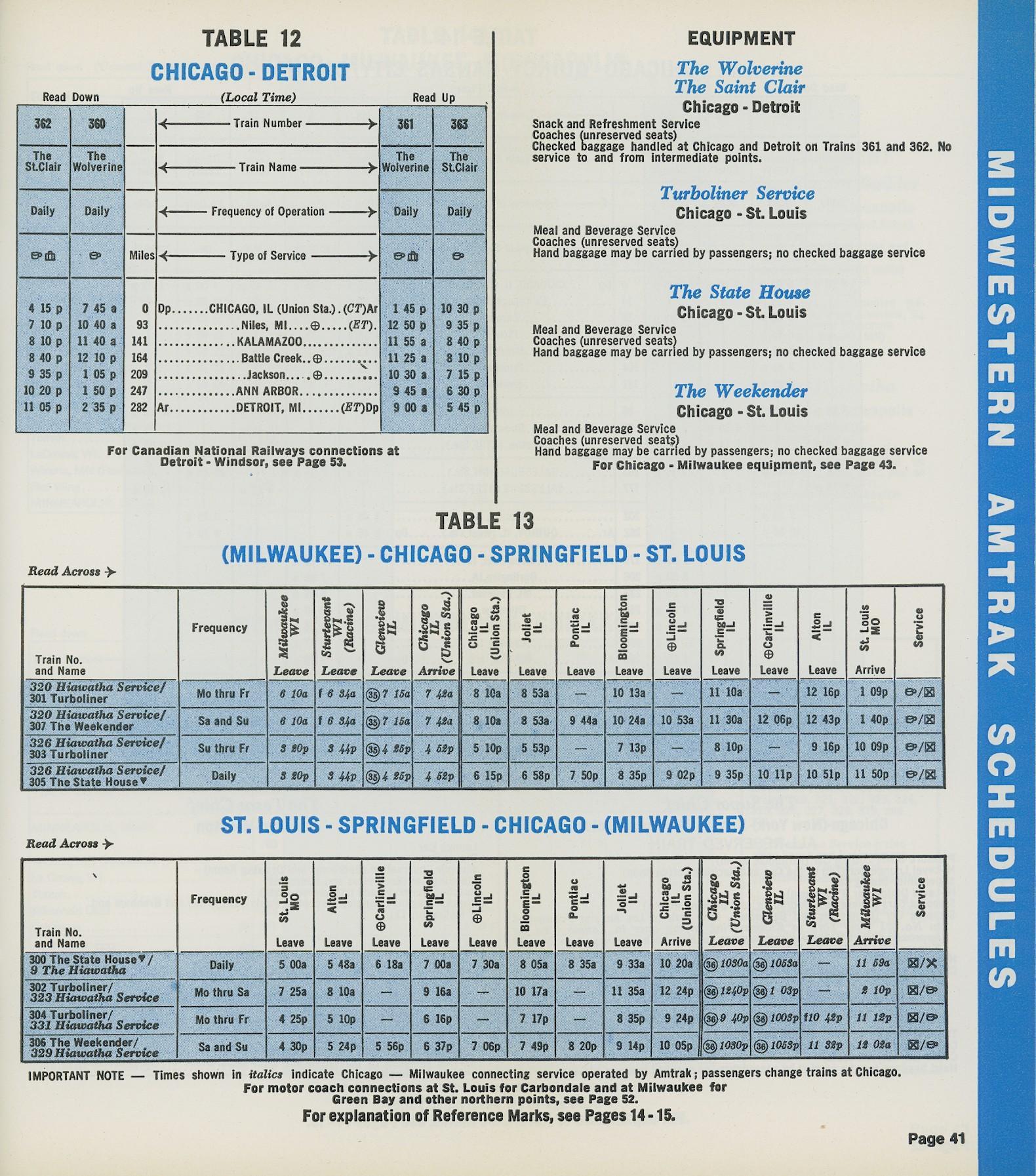 This timetable image is ©1973 National Railroad Passenger Corporation (Amtrak).
