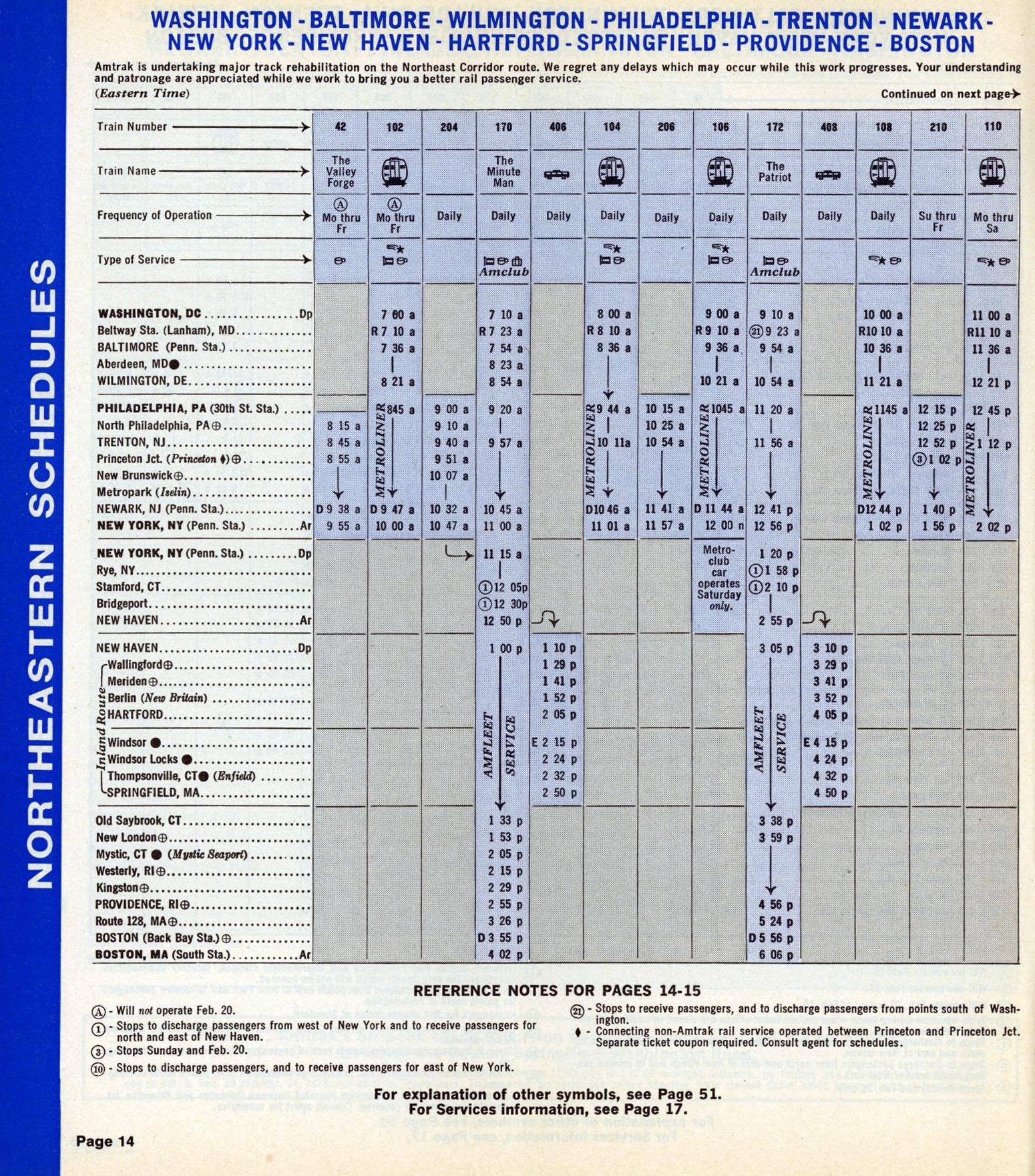 This timetable image is ©1978 National Railroad Passenger Corporation (Amtrak).