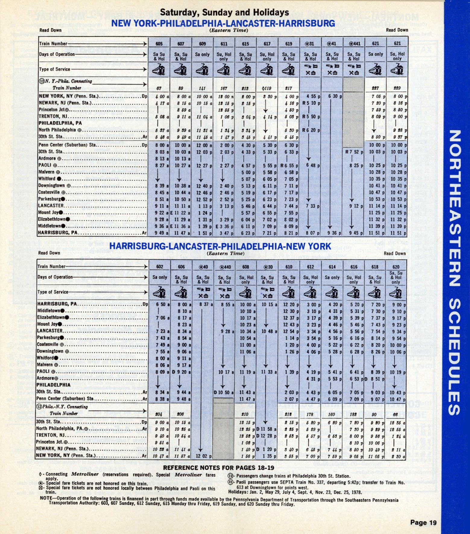 This timetable image is ©1978 National Railroad Passenger Corporation (Amtrak).