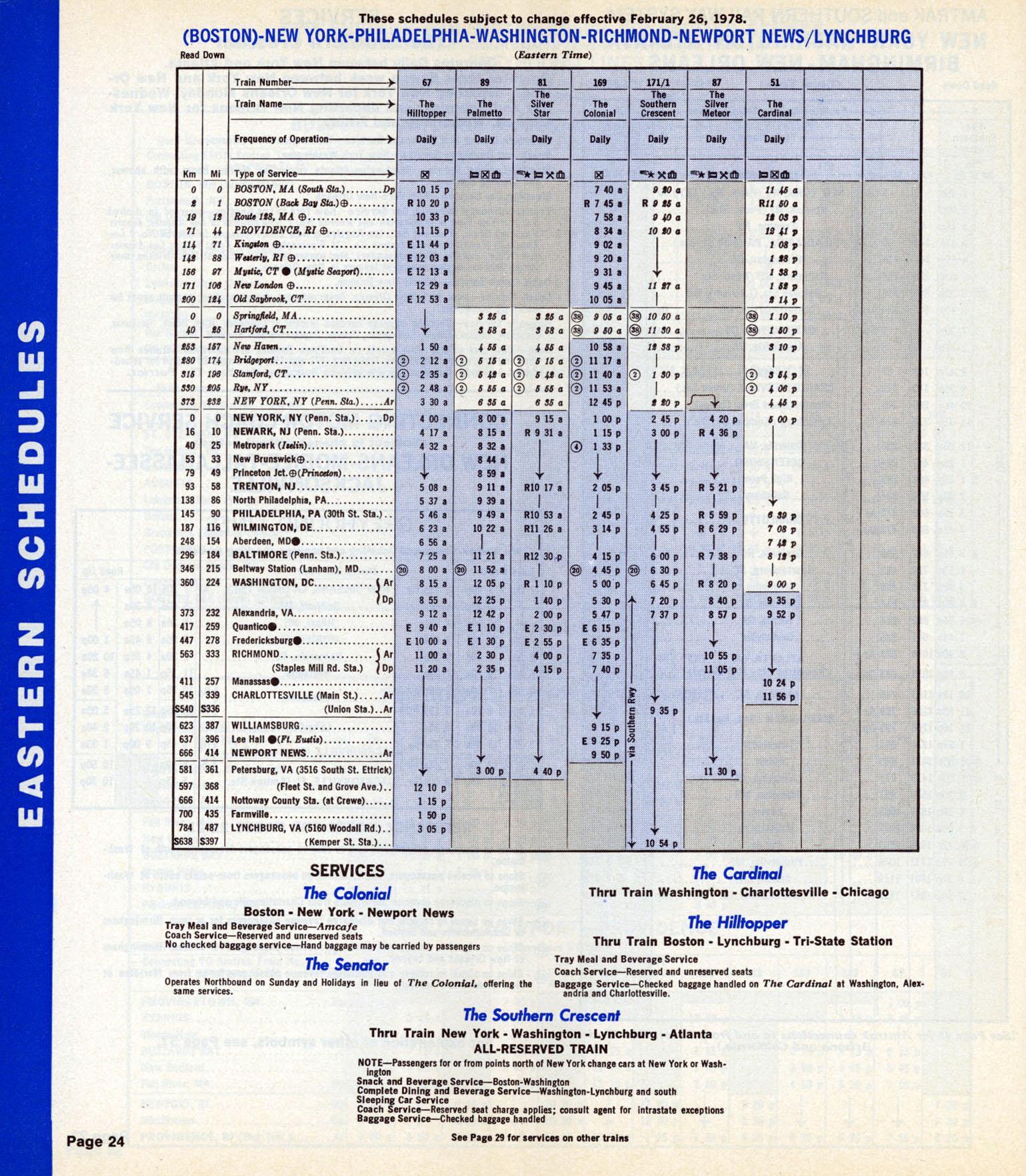 This timetable image is ©1978 National Railroad Passenger Corporation (Amtrak).