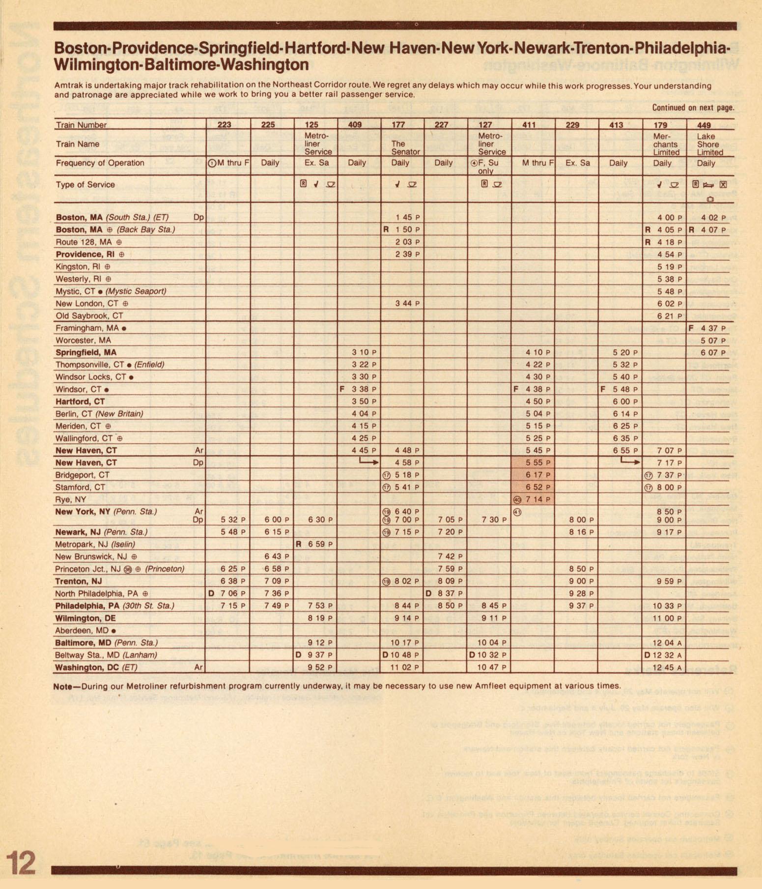 This timetable image is ©1978 National Railroad Passenger Corporation (Amtrak).
