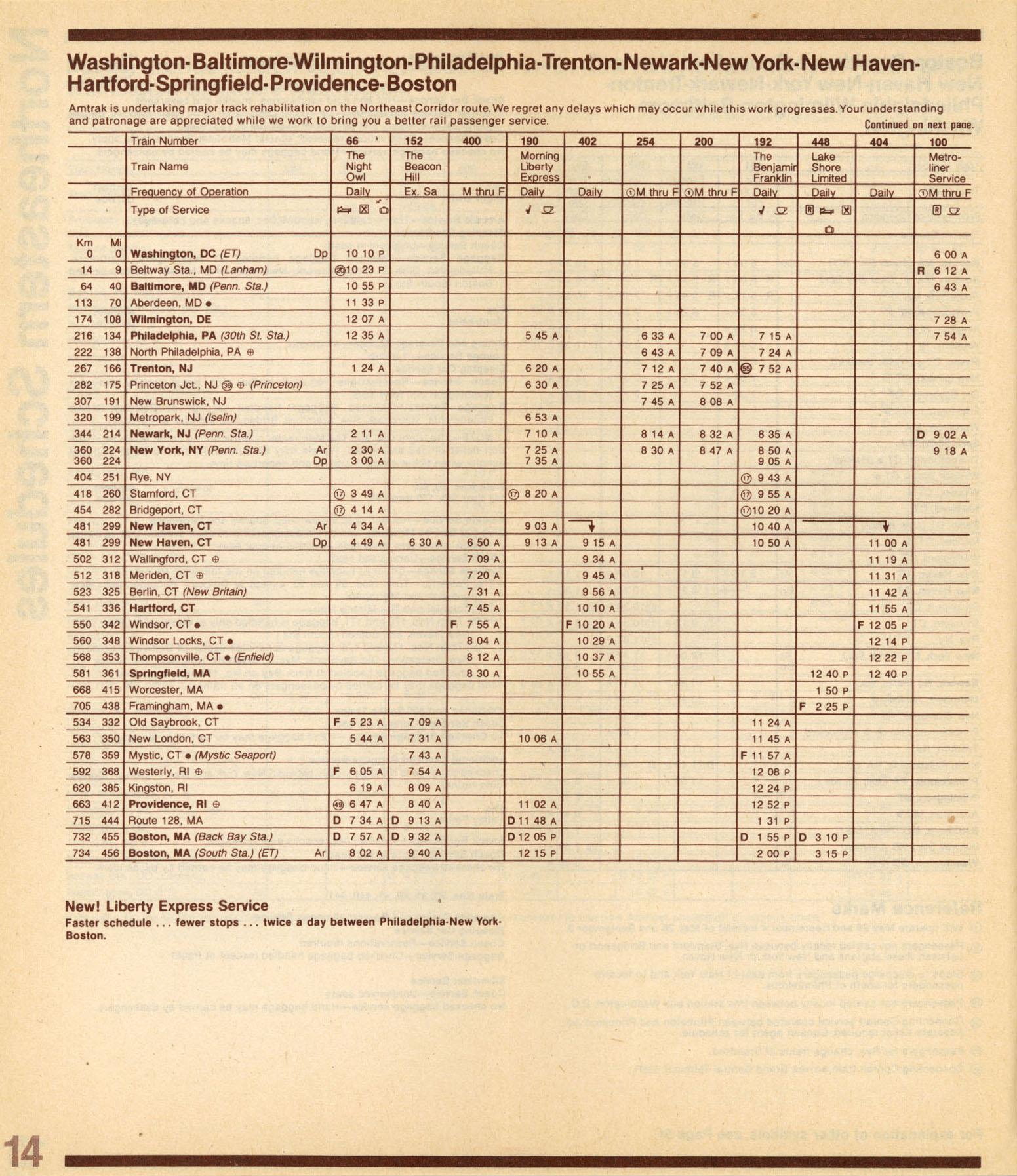 This timetable image is ©1978 National Railroad Passenger Corporation (Amtrak).