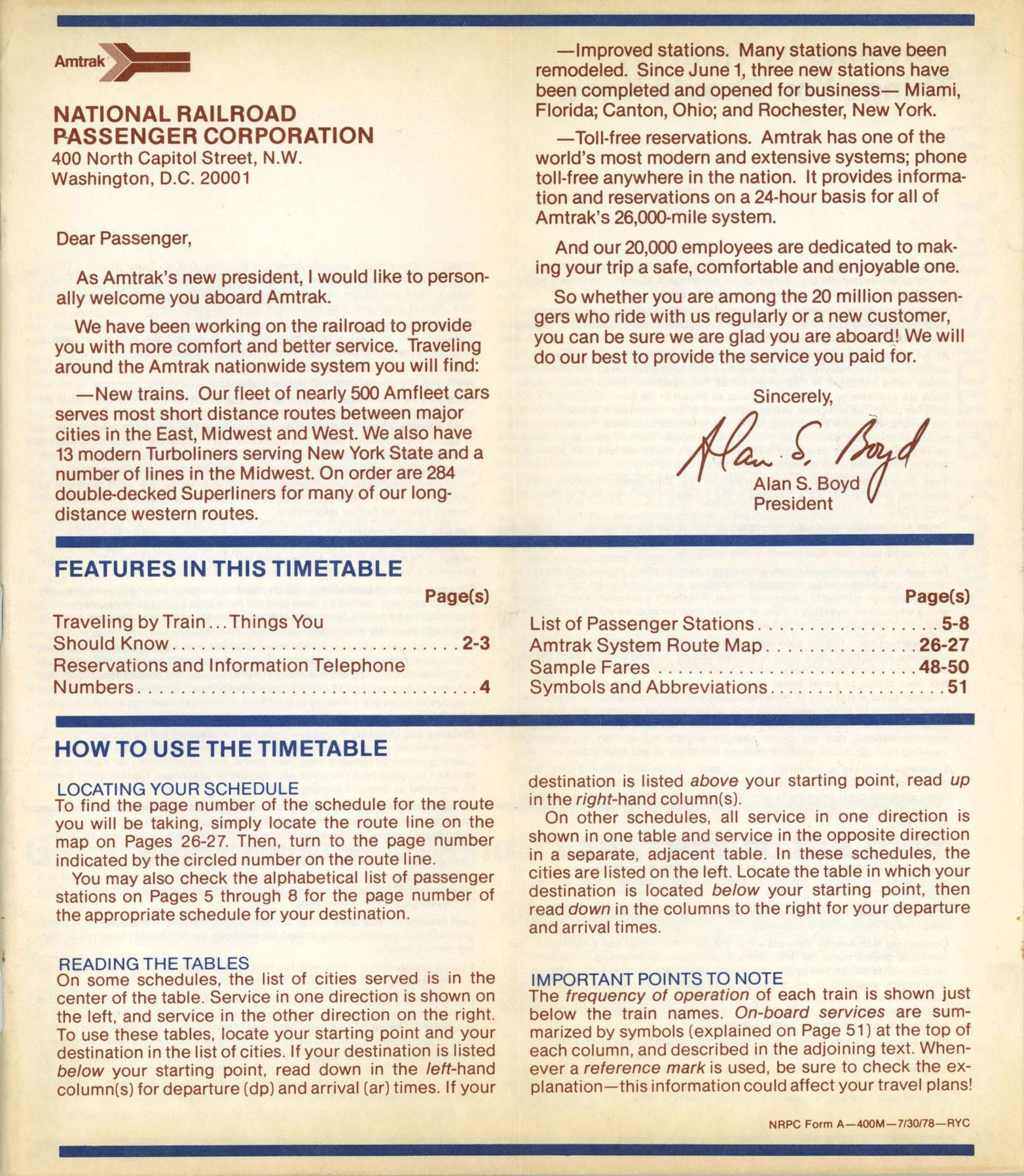 This timetable image is ©1978 National Railroad Passenger Corporation (Amtrak).