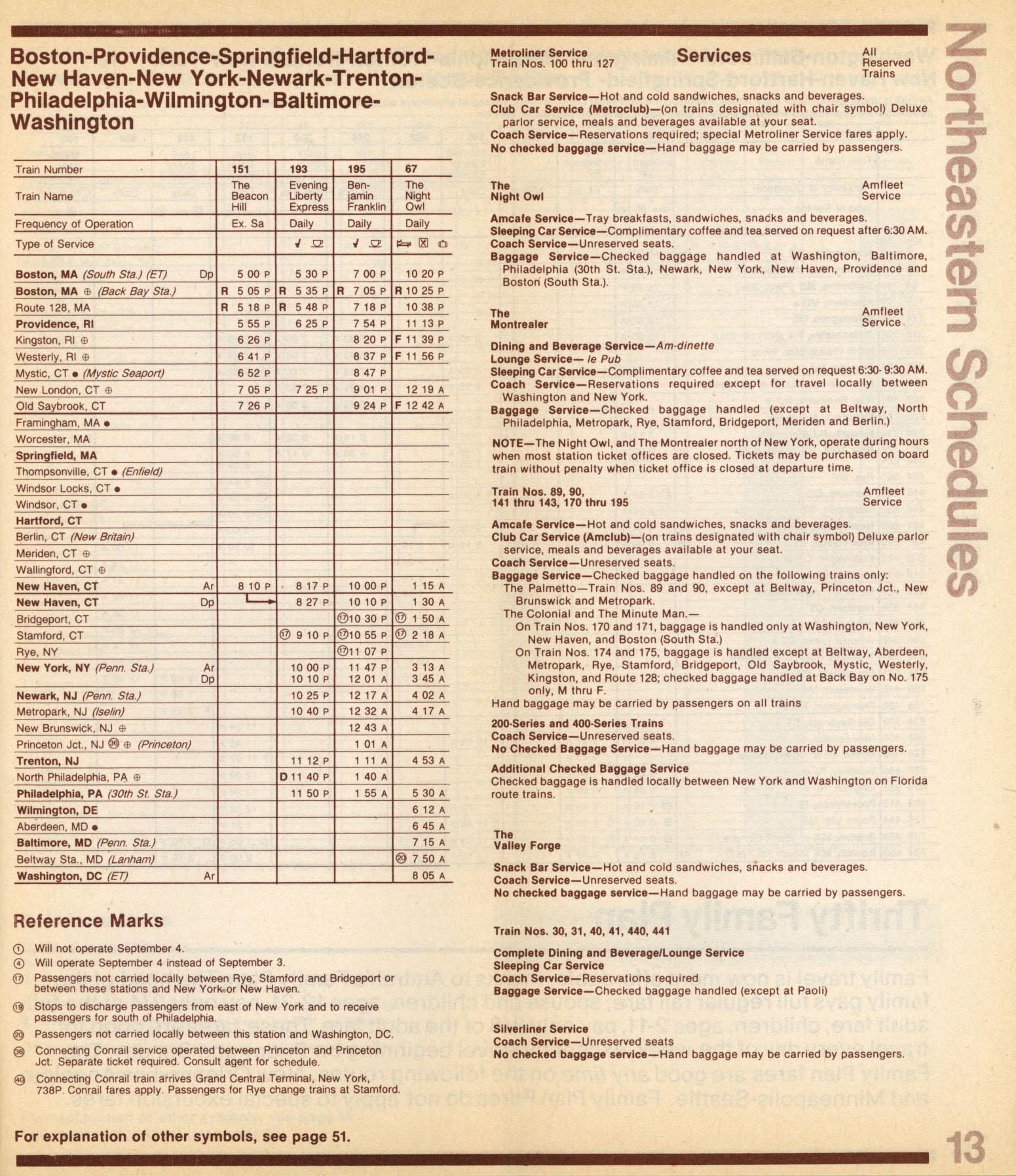 This timetable image is ©1978 National Railroad Passenger Corporation (Amtrak).