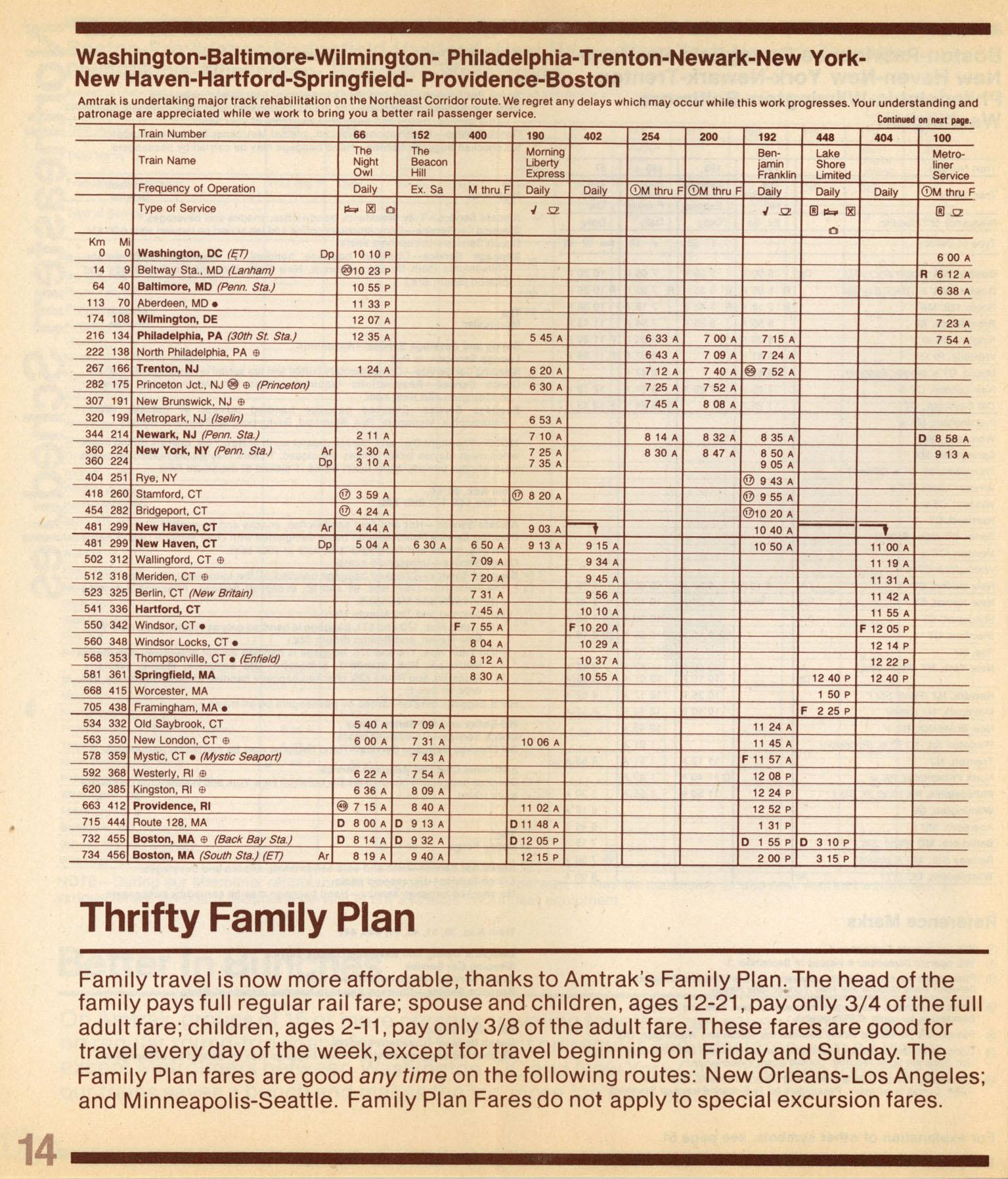 This timetable image is ©1978 National Railroad Passenger Corporation (Amtrak).