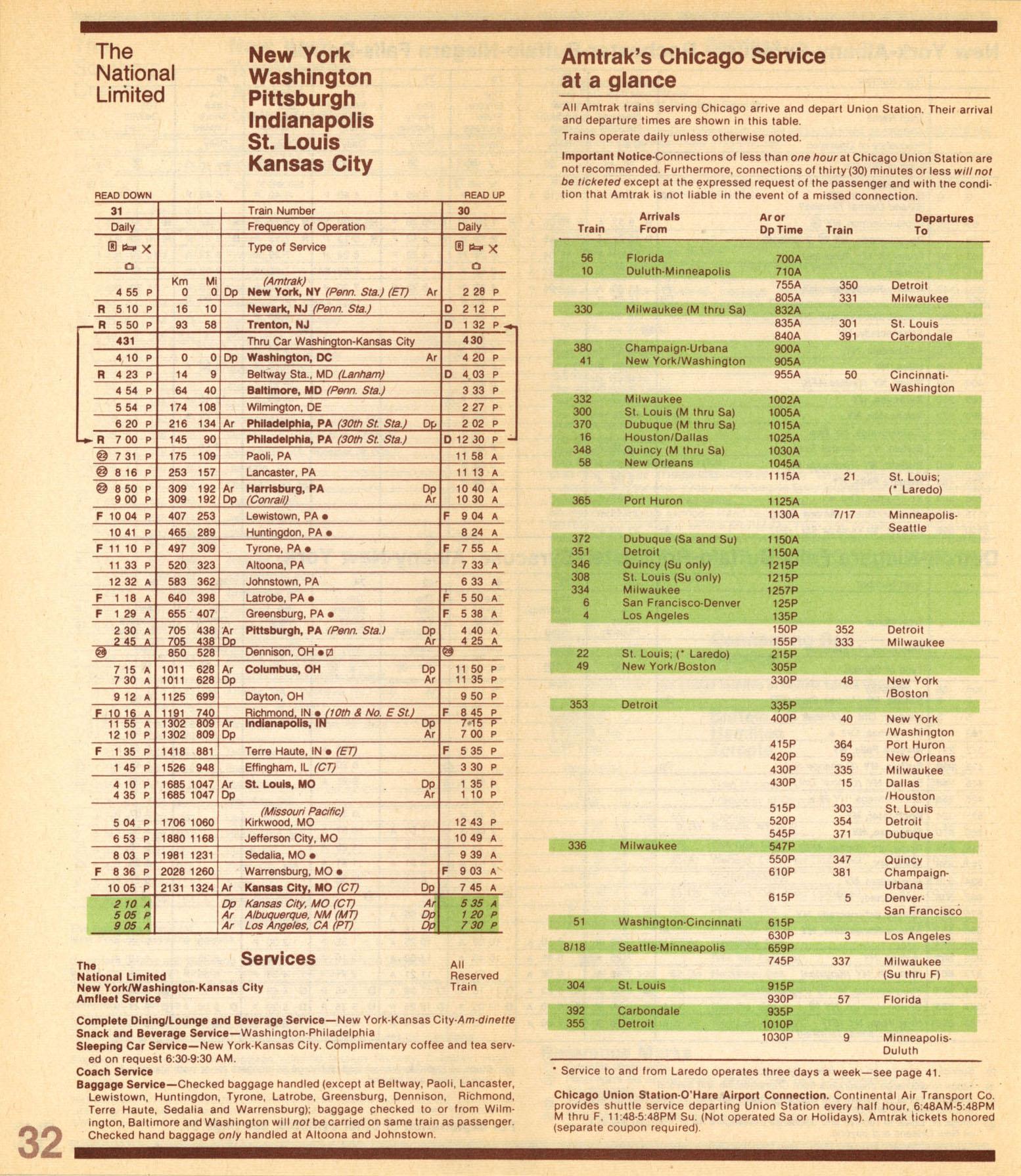 This timetable image is ©1978 National Railroad Passenger Corporation (Amtrak).