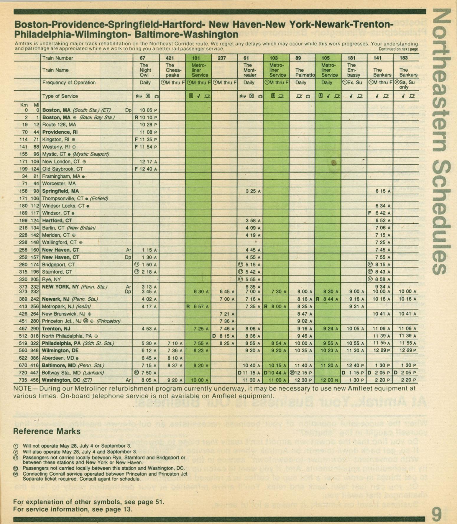 This timetable image is ©1979 National Railroad Passenger Corporation (Amtrak).