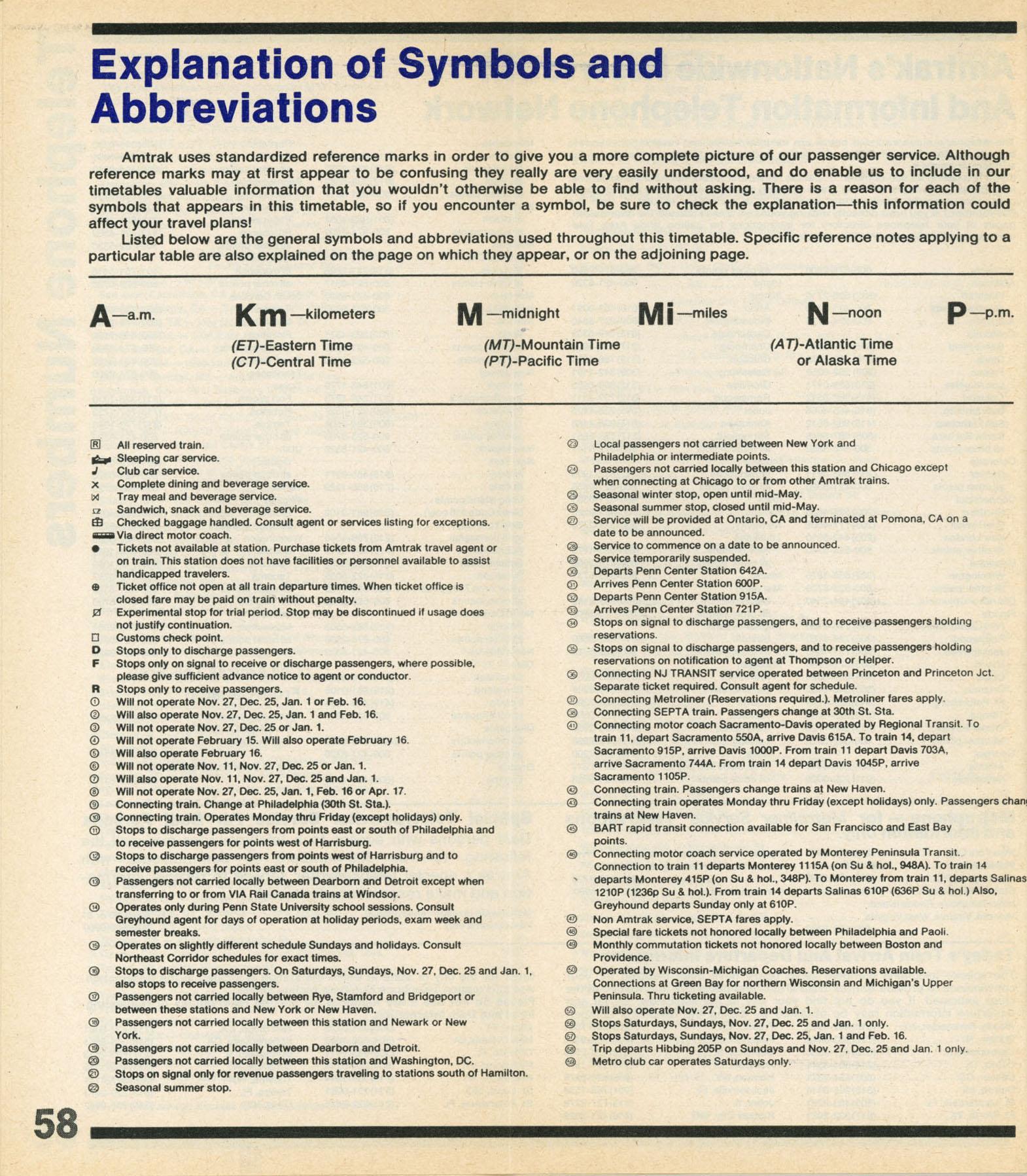 This timetable image is ©1980 National Railroad Passenger Corporation (Amtrak).