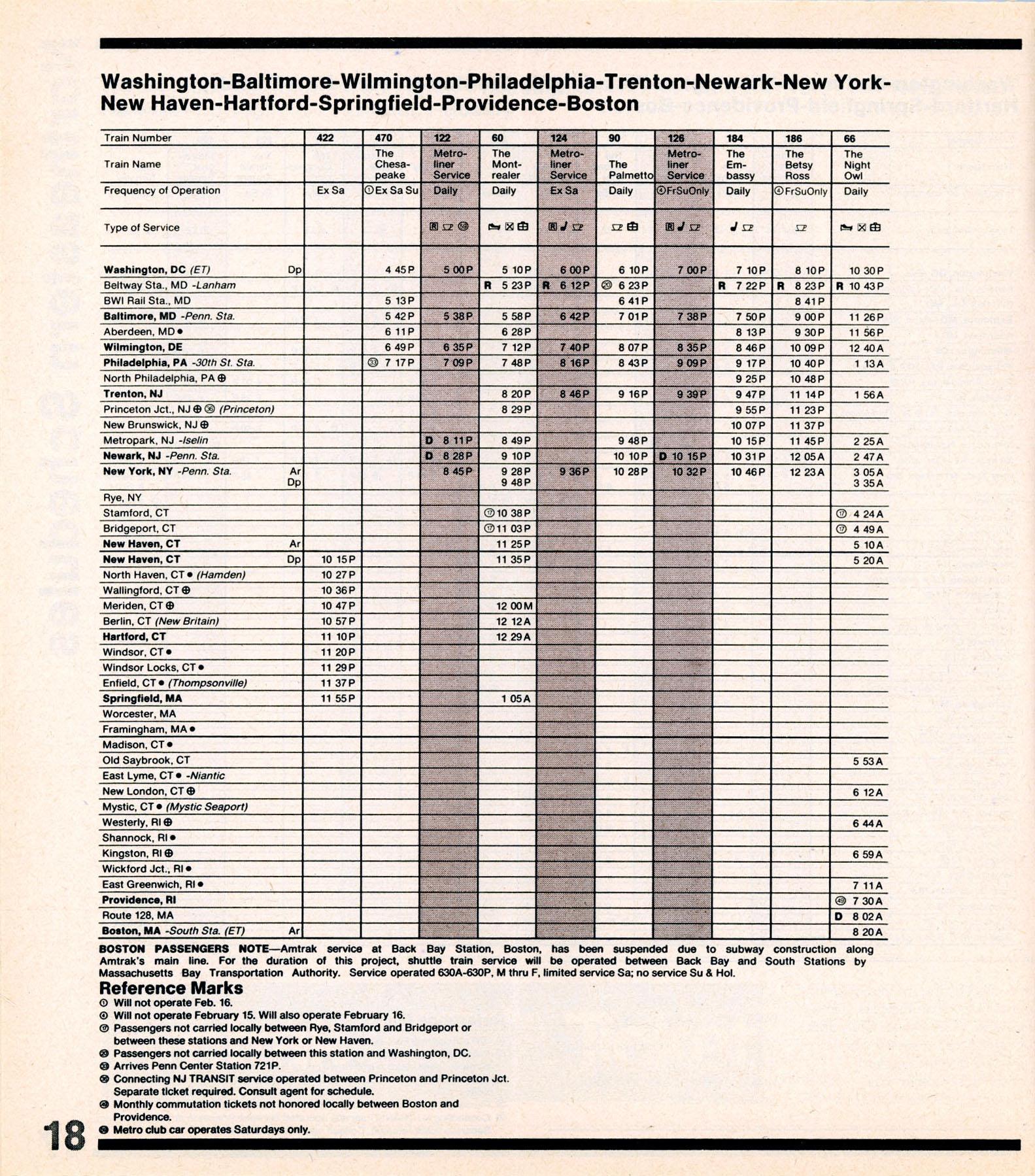 This timetable image is ©1981 National Railroad Passenger Corporation (Amtrak).