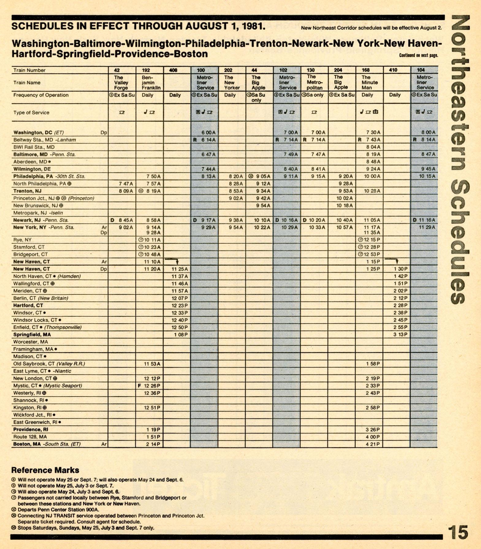 This timetable image is ©1981 National Railroad Passenger Corporation (Amtrak).