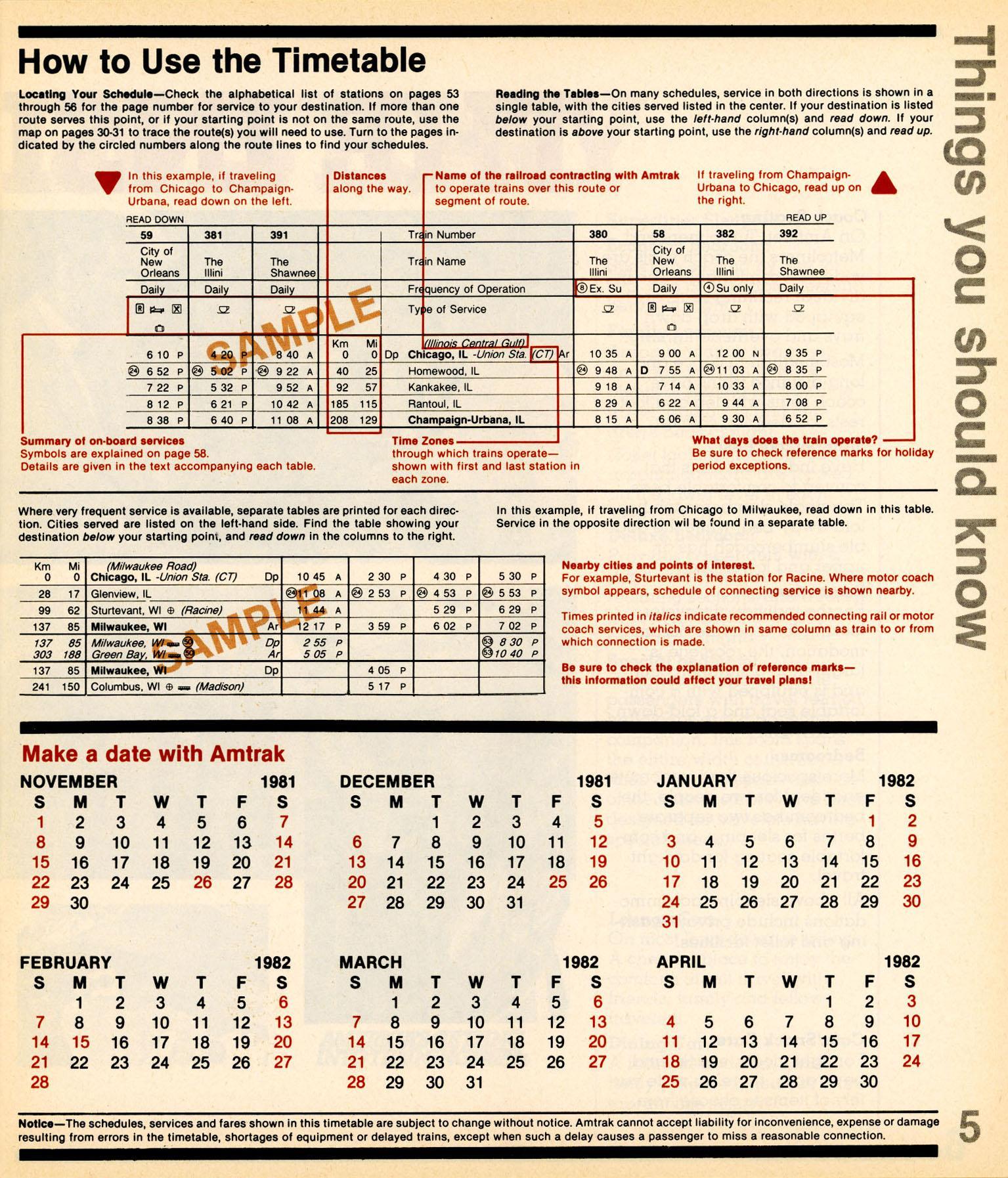 This timetable image is ©1981 National Railroad Passenger Corporation (Amtrak).