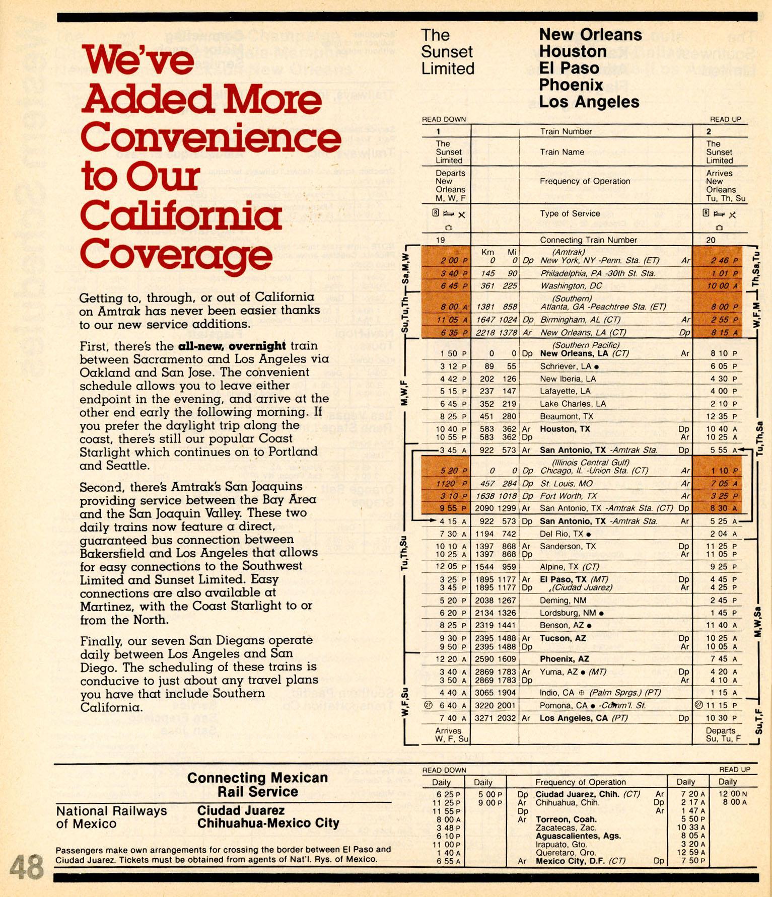 This timetable image is ©1981 National Railroad Passenger Corporation (Amtrak).