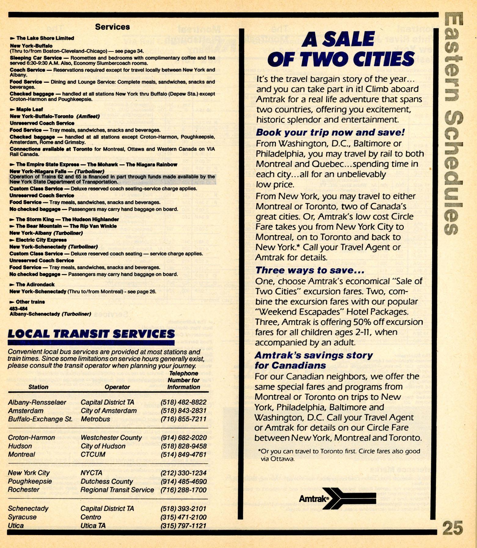 This timetable image is ©1982 National Railroad Passenger Corporation (Amtrak).