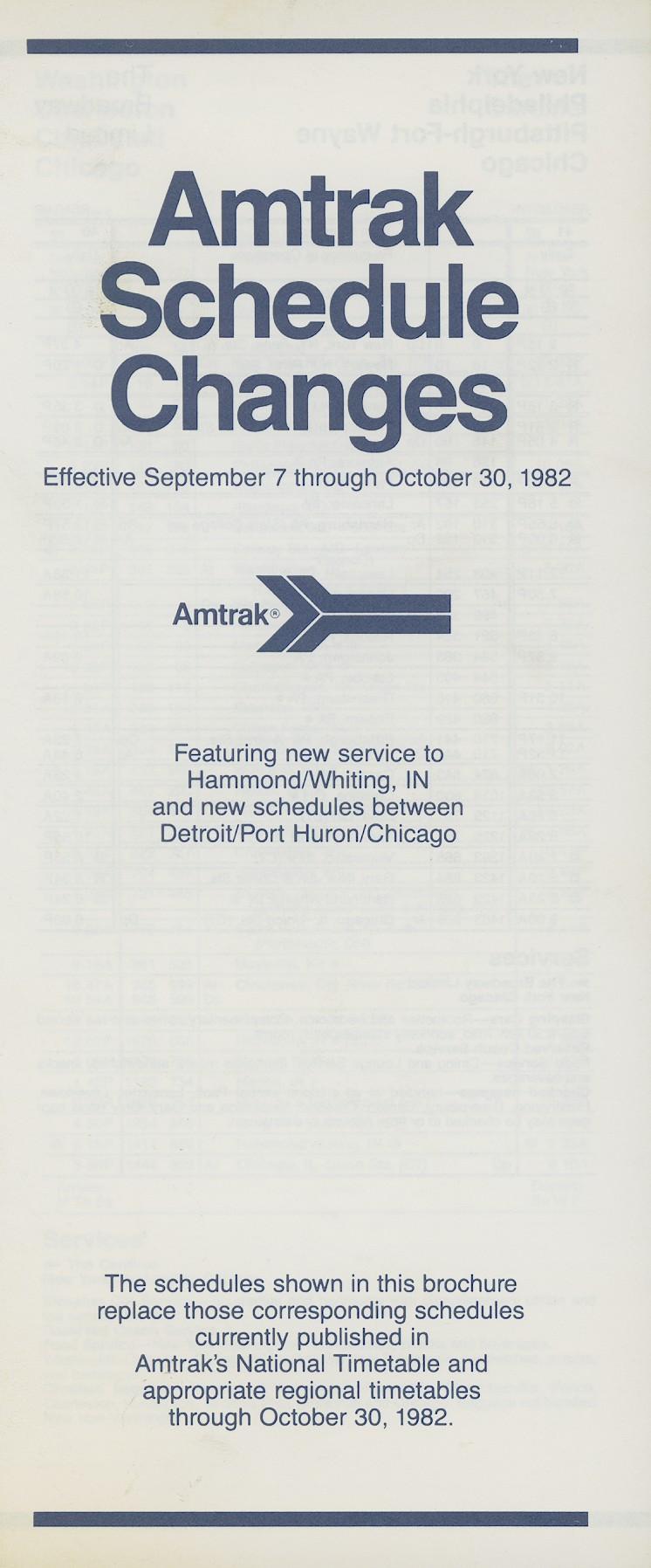 This timetable image is ©1982 National Railroad Passenger Corporation (Amtrak).