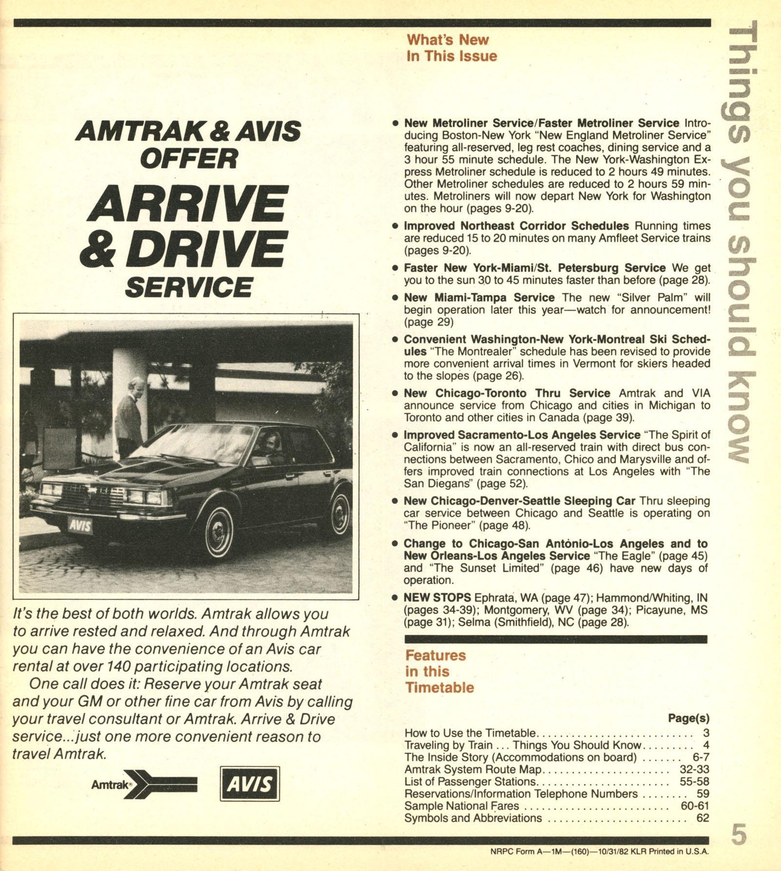 This timetable image is ©1982 National Railroad Passenger Corporation (Amtrak).