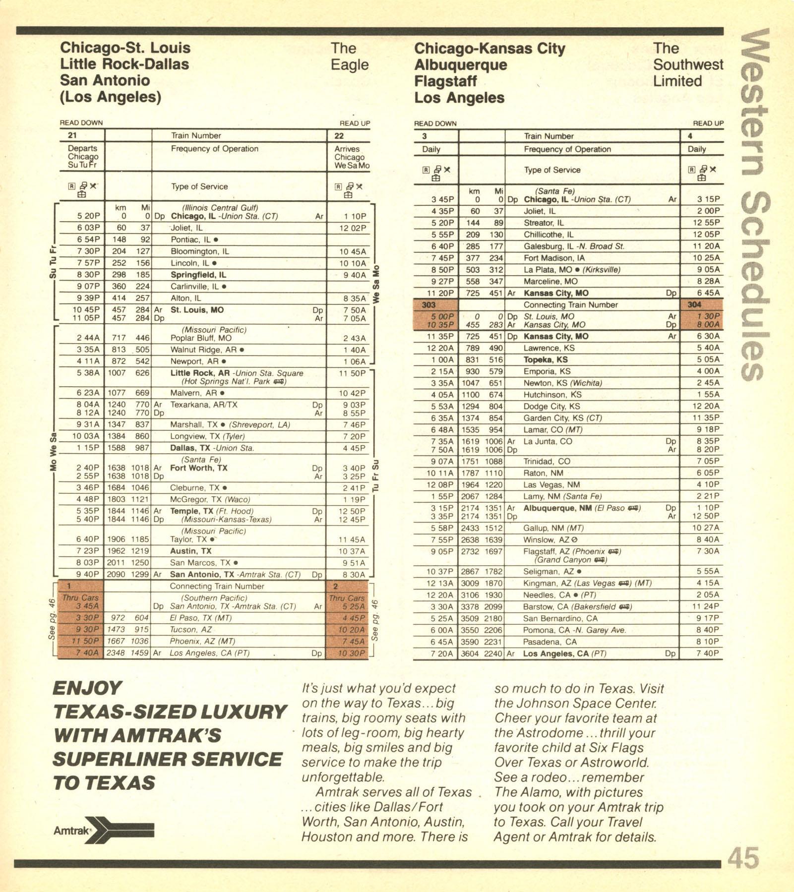 This timetable image is ©1982 National Railroad Passenger Corporation (Amtrak).