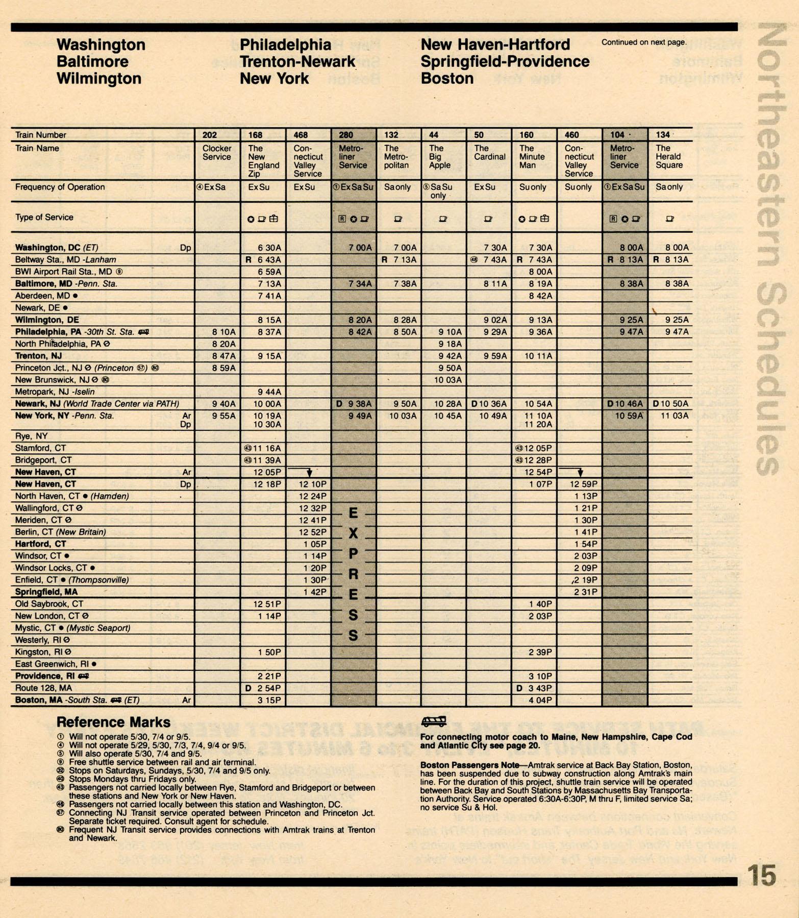 This timetable image is ©1983 National Railroad Passenger Corporation (Amtrak).