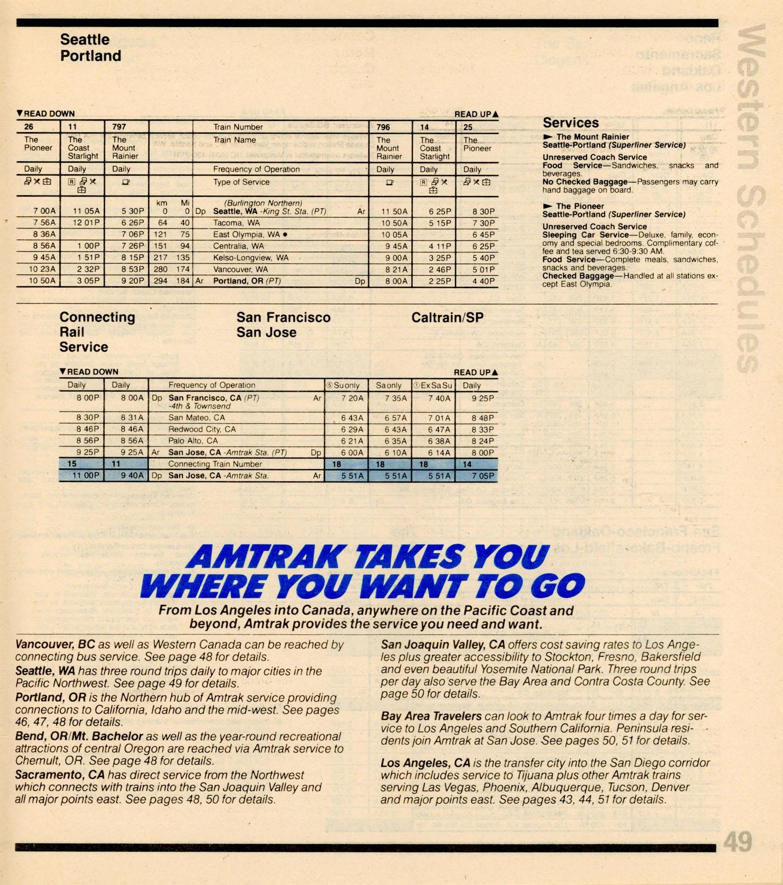 This timetable image is ©1983 National Railroad Passenger Corporation (Amtrak).