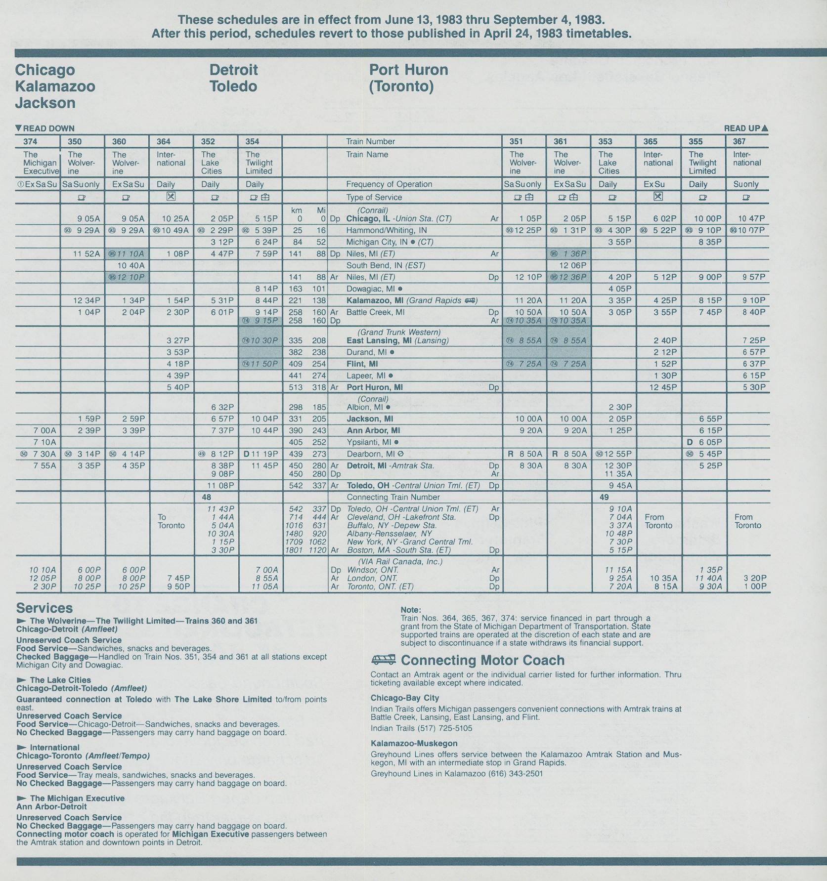 This timetable image is ©1983 National Railroad Passenger Corporation (Amtrak).