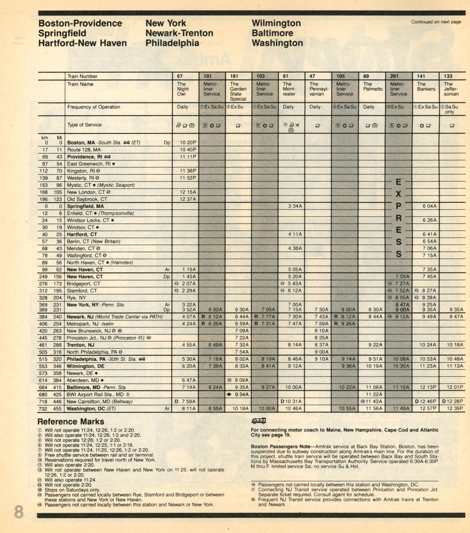 This timetable image is ©1983 National Railroad Passenger Corporation (Amtrak).