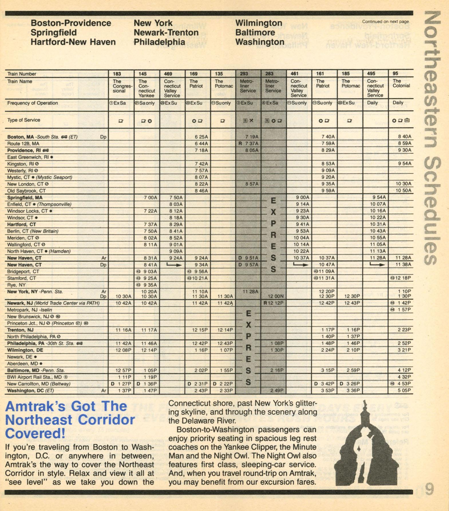 This timetable image is ©1983 National Railroad Passenger Corporation (Amtrak).