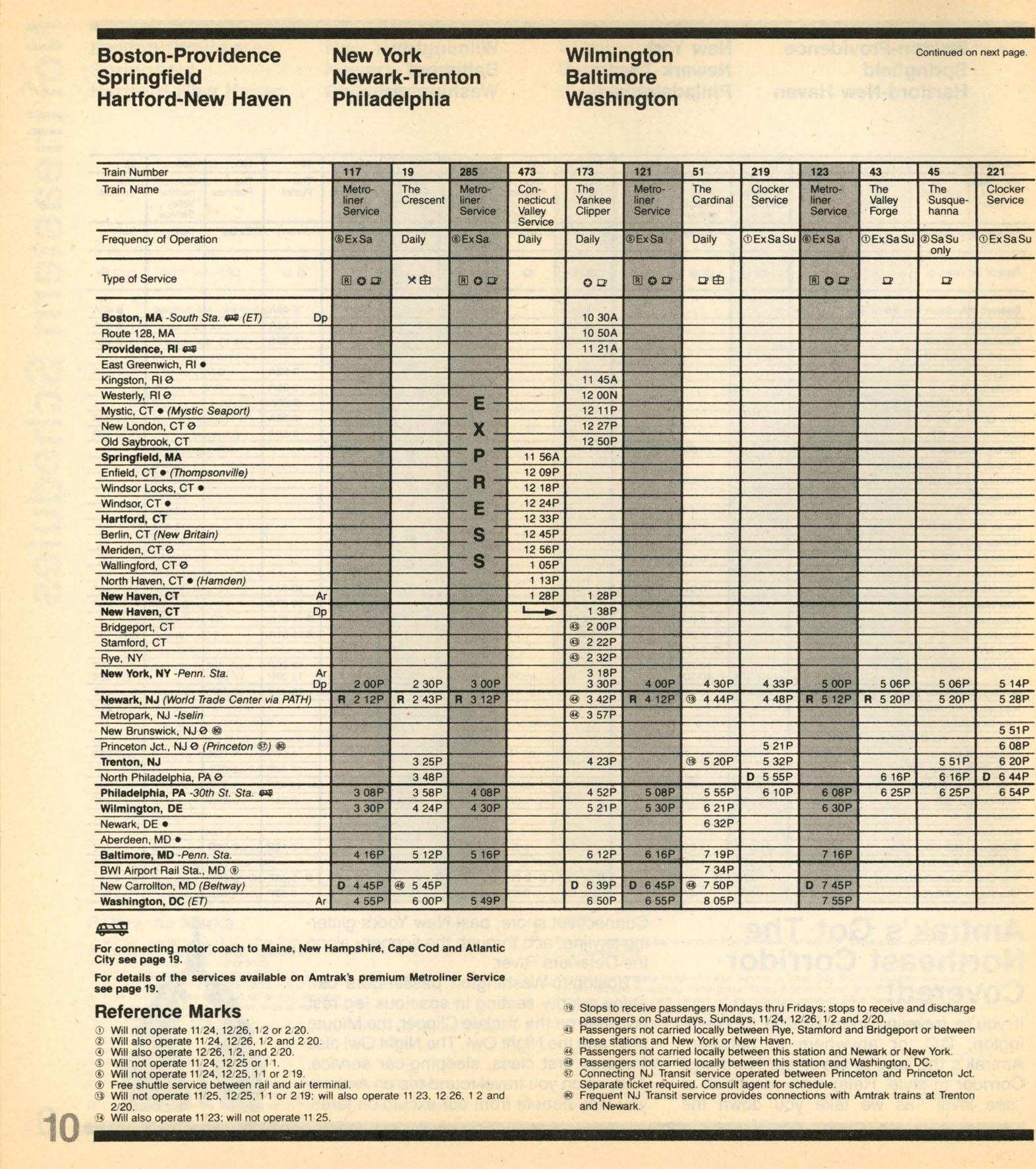 This timetable image is ©1983 National Railroad Passenger Corporation (Amtrak).