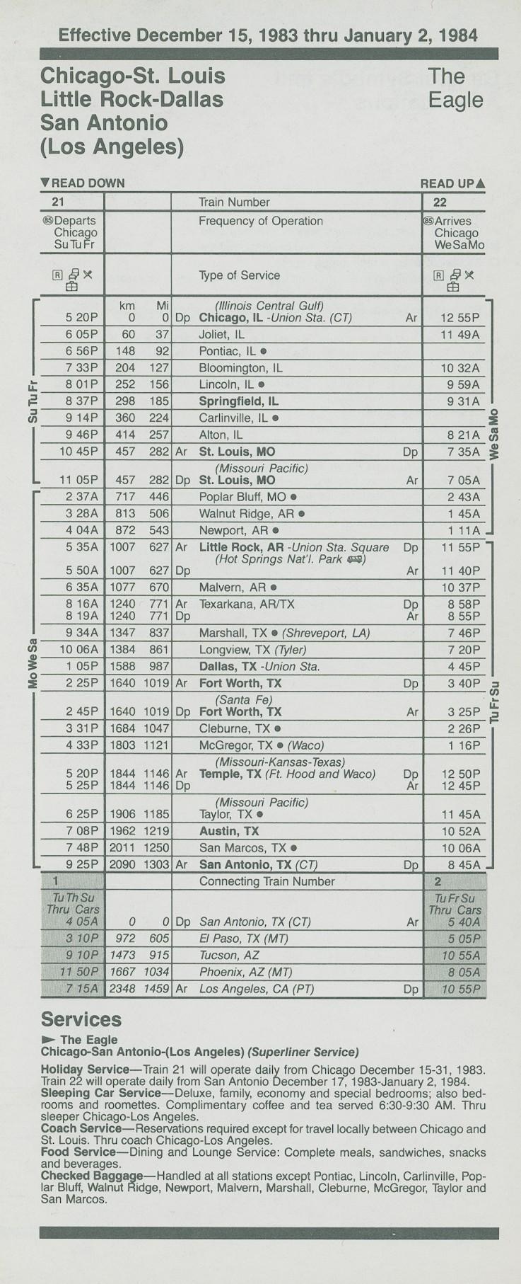 This timetable image is ©1983 National Railroad Passenger Corporation (Amtrak).
