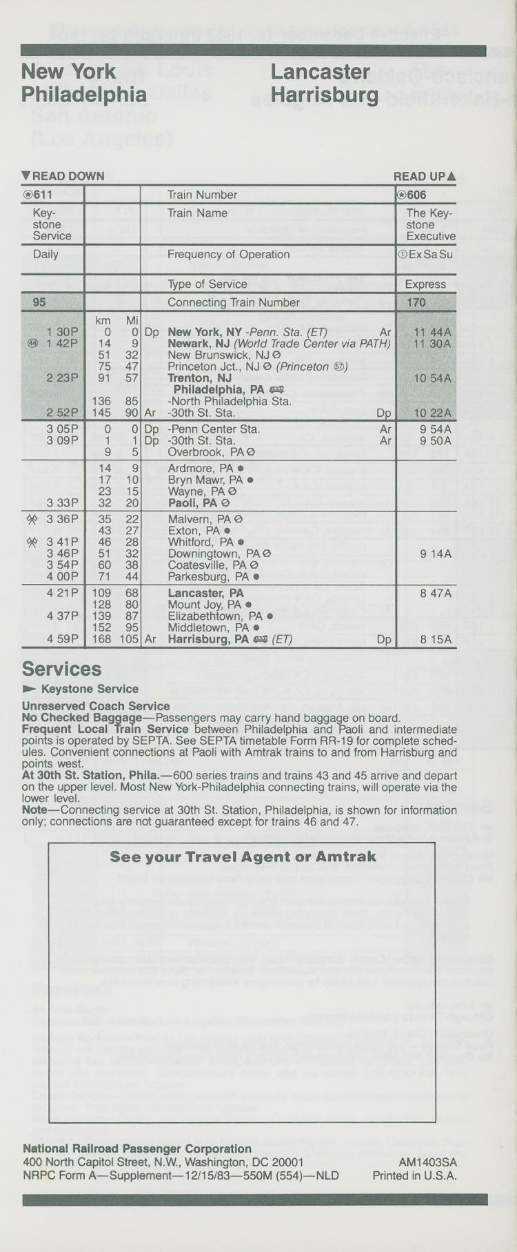 This timetable image is ©1983 National Railroad Passenger Corporation (Amtrak).