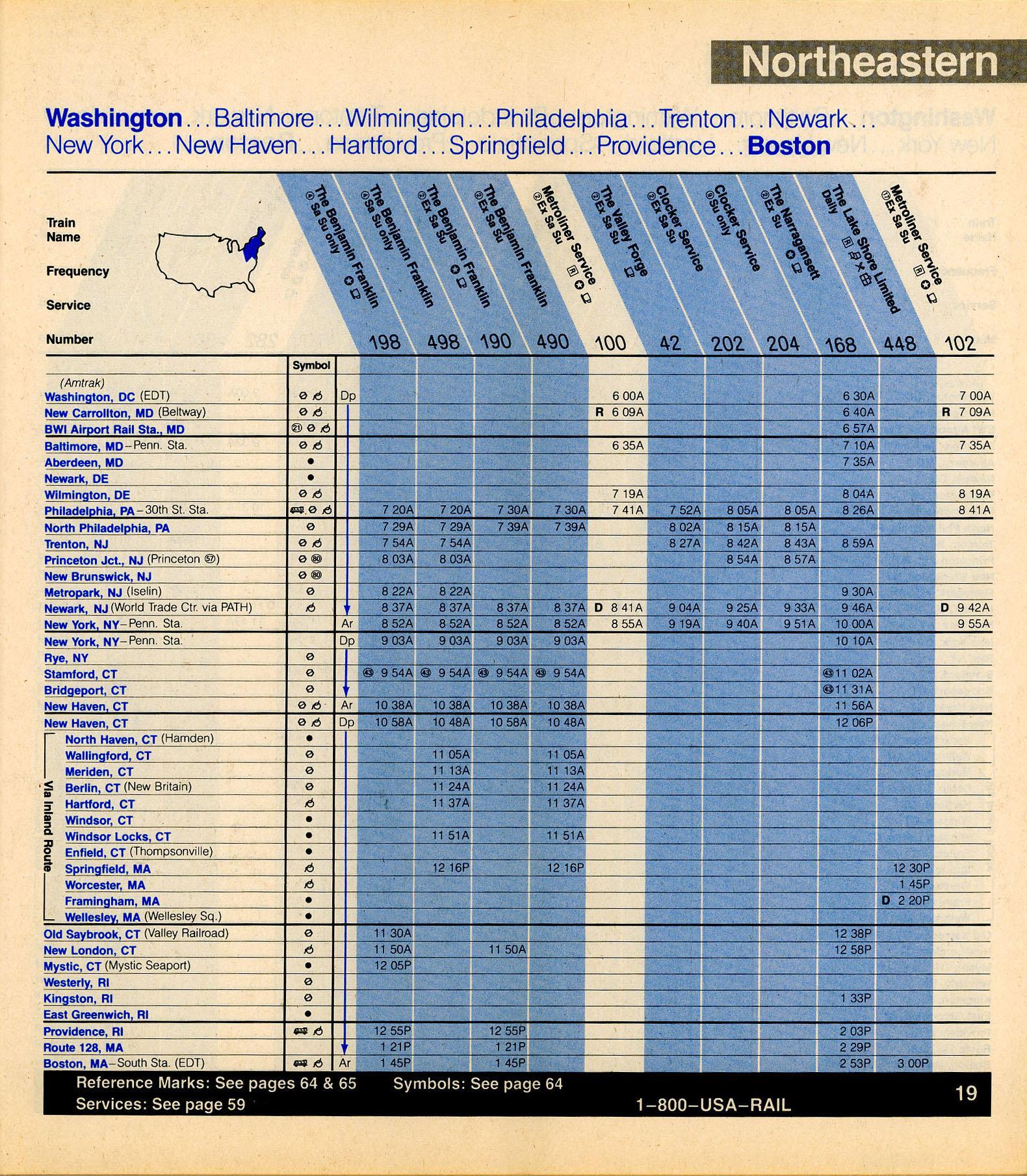 This timetable image is ©1986 National Railroad Passenger Corporation (Amtrak).