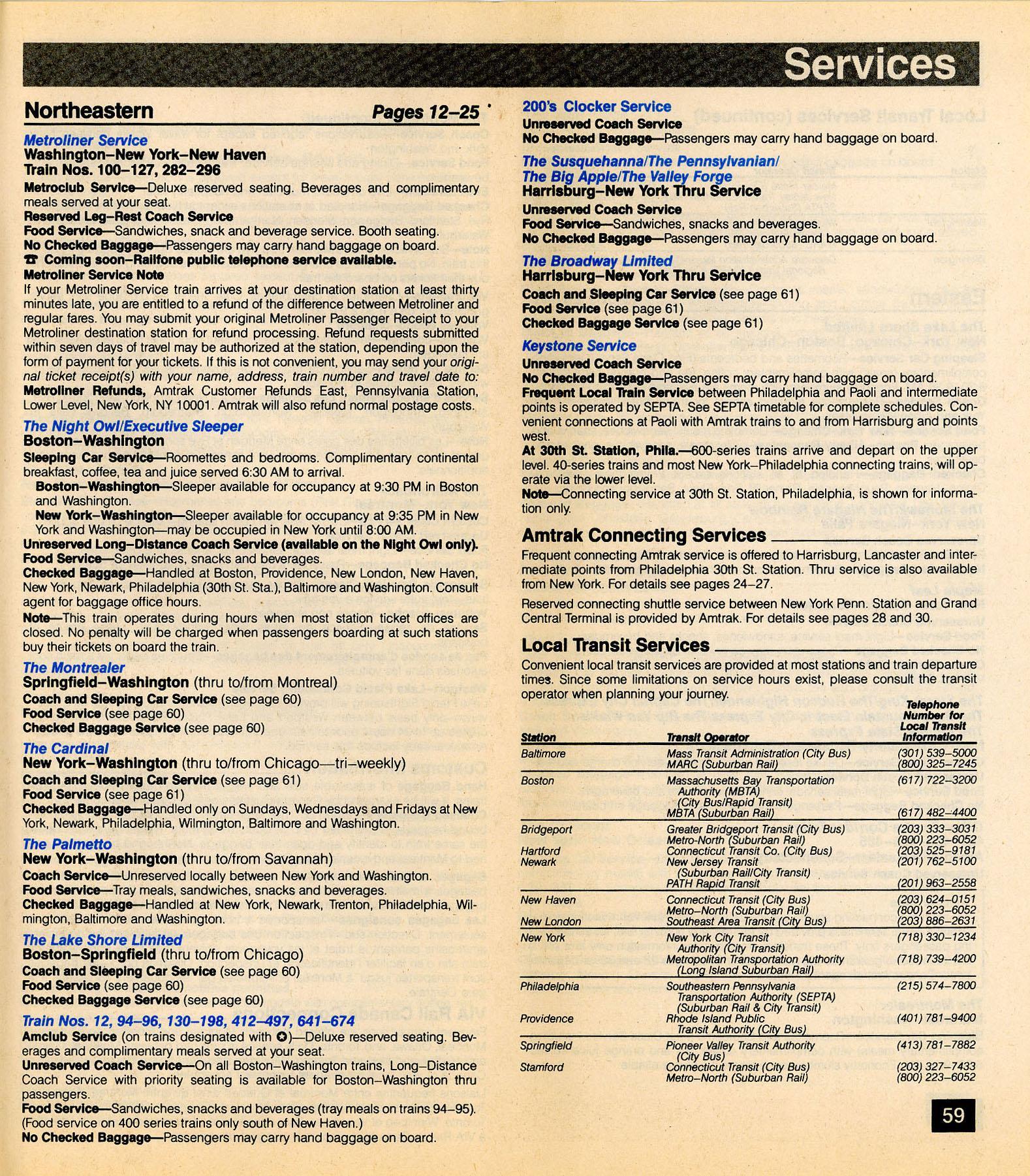 This timetable image is ©1986 National Railroad Passenger Corporation (Amtrak).