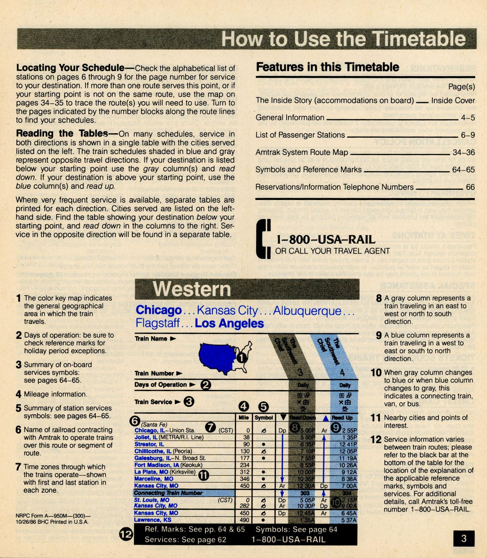 This timetable image is ©1986 National Railroad Passenger Corporation (Amtrak).